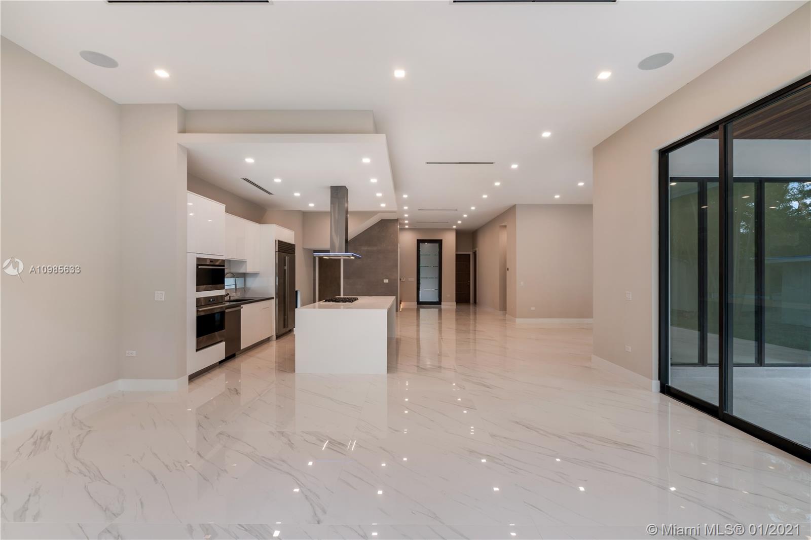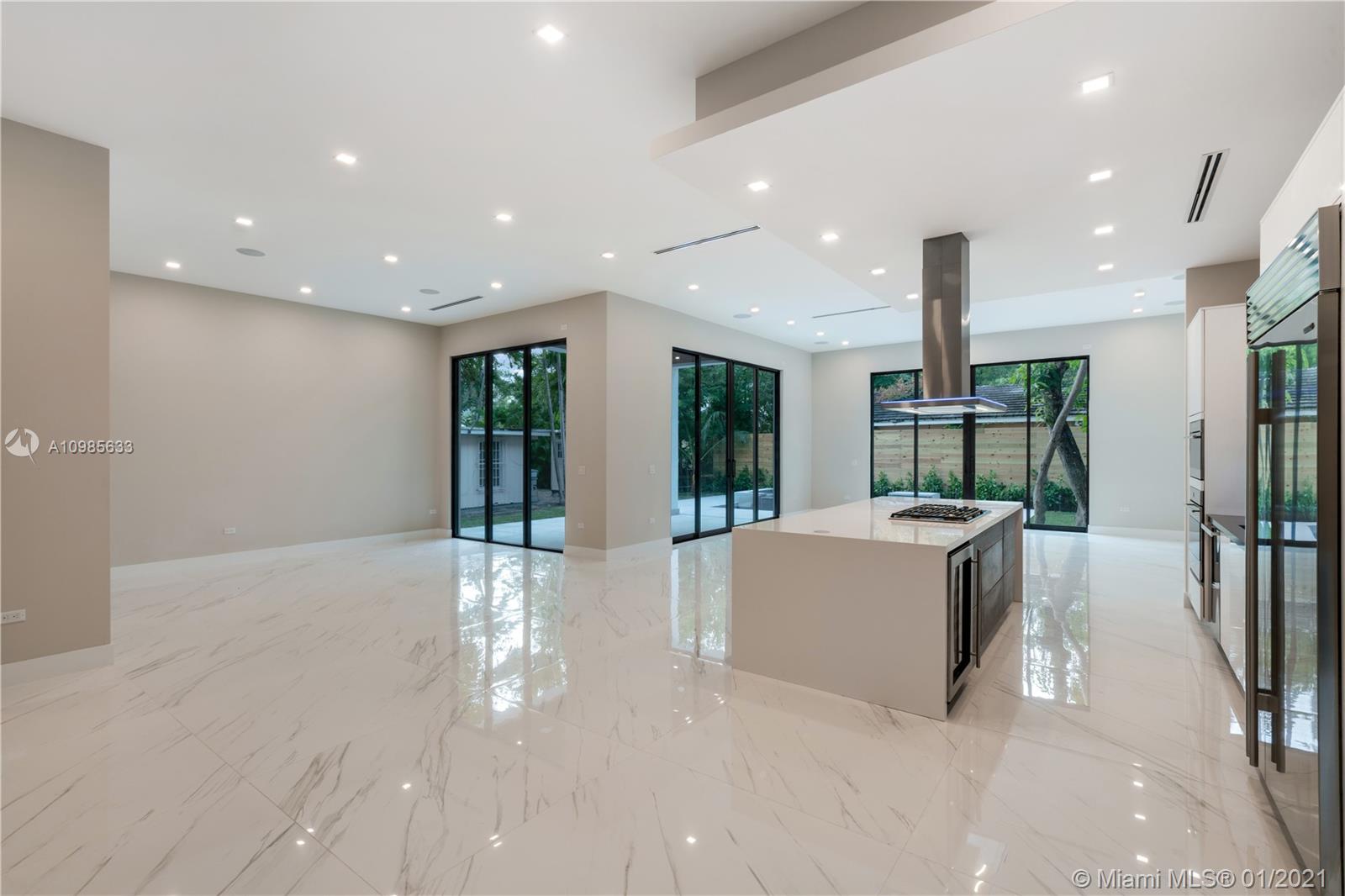 New spectacular custom contemporary home located in North Coconut Grove high on the ridge. Steps away from the bay, marinas and Fresh Market. Luxury finishes include extensive use of Brazilian wood, European floors, and custom staircase. Convenient layout 4/4 upstairs, 1/1 downstairs with two car garage. Ideal home for entertainment featuring an open kitchen with quartz counters and top of the line appliances including SubZero, Miele, Wolf oven and gas cook top. Covered patio and a fully equipped summer kitchen overlooking the pool. Many other extras include elevator, impact door/windows, steam shower, camera system, salt water heated pool and much more.