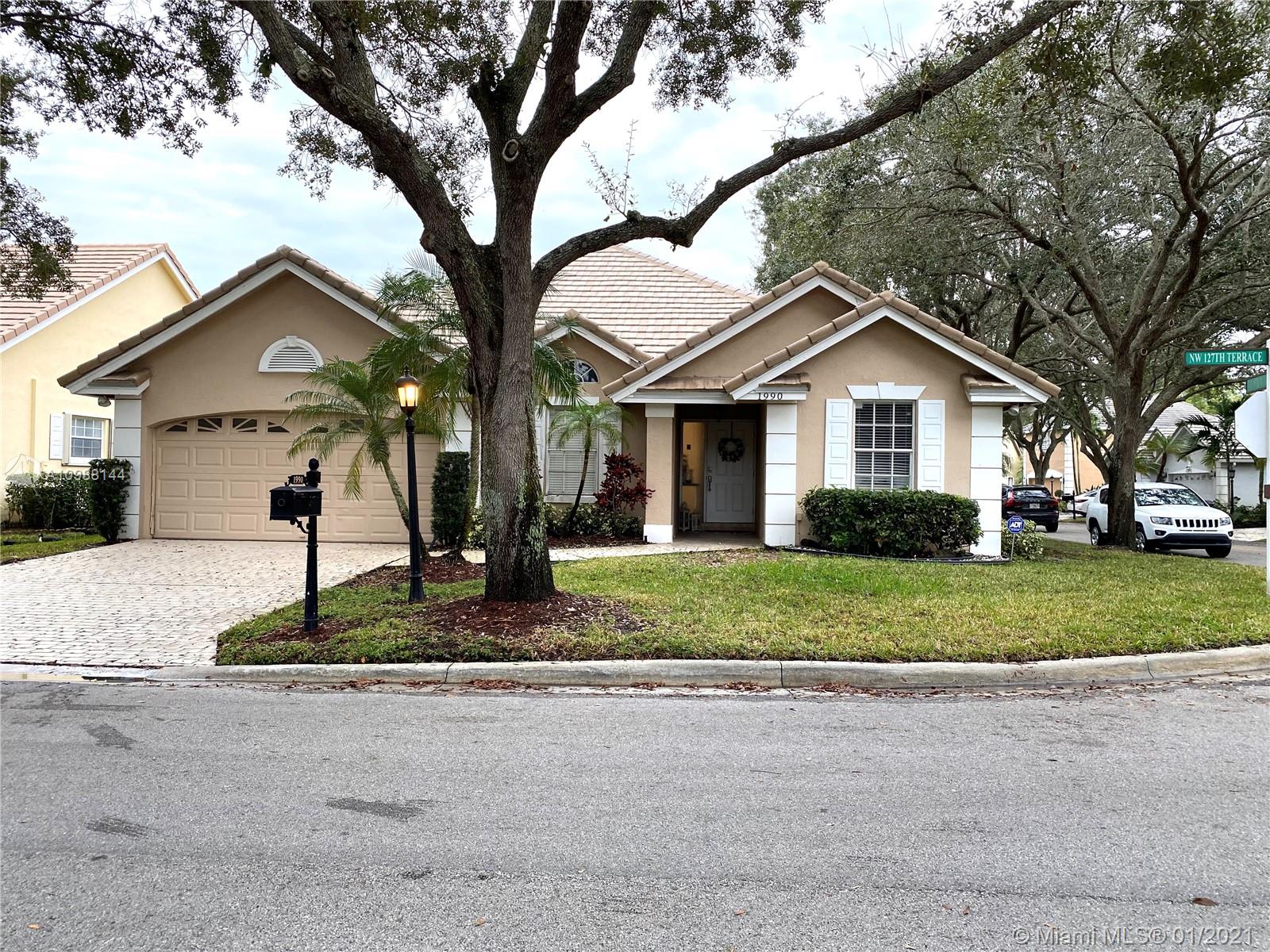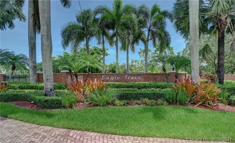 Beautiful spacious 3 bedroom, 2.5 bathrooms located in the prestigious Eagle Trace Community. This home has vaulted ceilings, skylights, very open layout, spacious bedrooms and is an oversized corner lot. Highly desirable public golf course that wraps around the main community. Three gated entrances which are manned 24 hours, 7 days a week. Community includes pool, tennis court, basketball court and clubhouse. Roof was installed 6 years ago and water heater replace in 2019, newly remolded kitchen has granite counter tops and wood cabinets, with plenty of storage, including kitchen island. Dark brown wood floors newly installed throughout the house. Master bedroom includes a walk-in closet along with his and hers granite countertop sinks, separate shower and roman tub.
