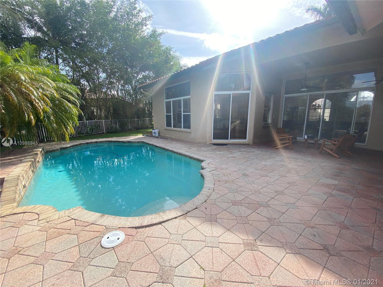 Westport's finest! As you enter the spectacular double entry doors you are greeted with breathtaking panoramic views of the pool and tranquil lake, this light & bright gem boasts high tray ceilings, and lots of natural light. The stunning view is visible from the living room, family room, kitchen and master bedroom. There are 4 spacious bedrooms located in a private enclave off the living areas. The vast master bedroom boasts his & hers walk-in closets. The ensuite bathroom has a roman tub & shower also has separate his and hers vanities. Brand new tile roof completed in 2020, 2 new Ac units, hurricane shutters, new washer & dryer, monitored security. Westport is located in prestigious Plantation with A-Elementary school, American Heritage HS. Close to highways, restaurants & shopping.