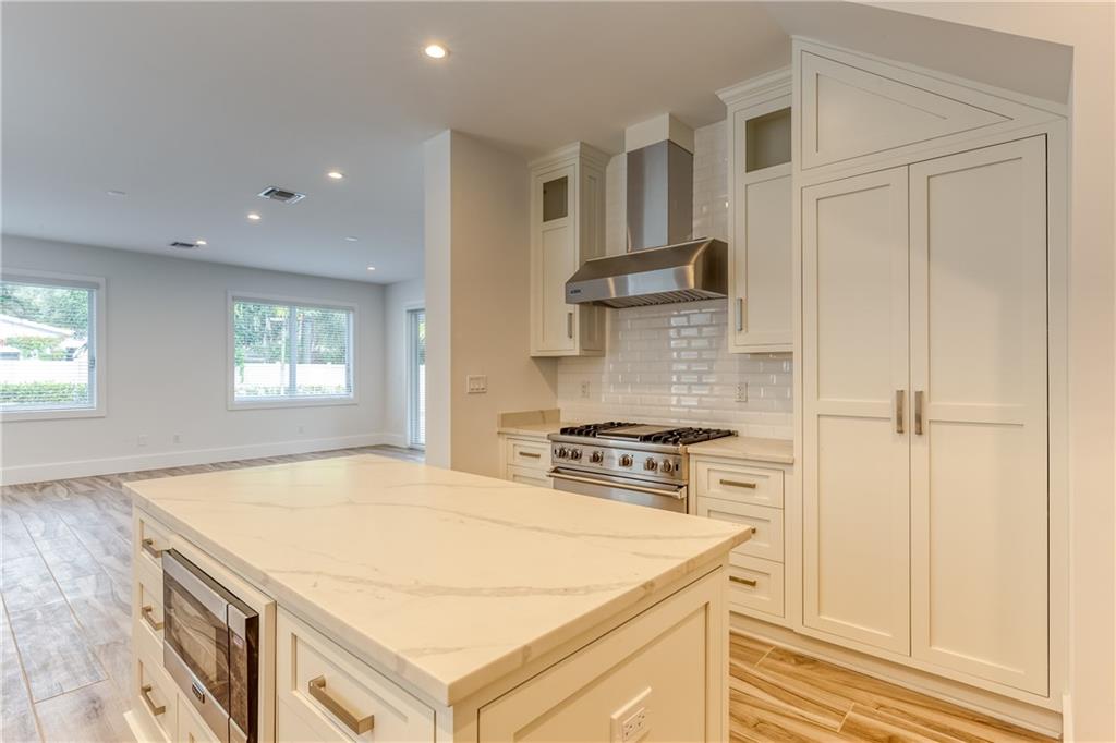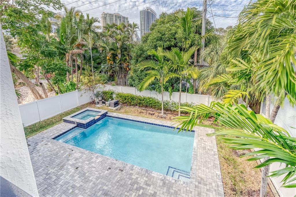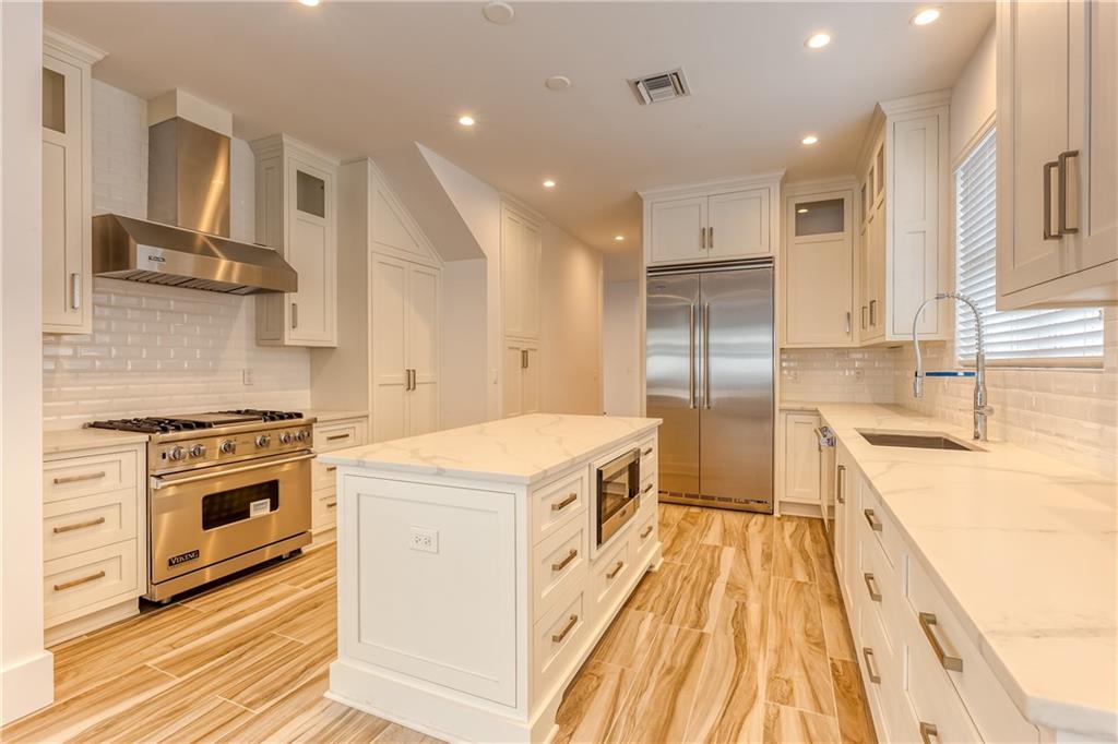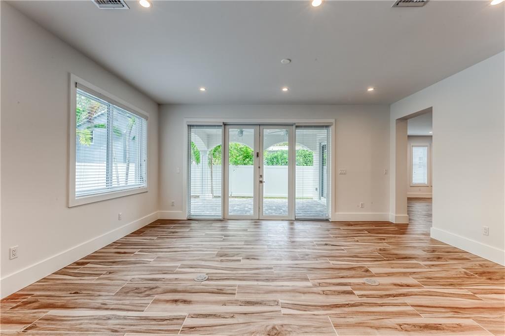 This remarkable newly built home is located in the Rio Vista neighborhood next to downtown Fort Lauderdale. Full of century-old oak trees and peaceful streets, the community offers South Florida living at its finest. This 5-bedroom, 5.5-bath home provides a beautiful, modern aesthetic — featuring porcelain tile, wide plank wood flooring, and clean, contemporary finishes. Its floor plan is perfect for families, including a spacious master upstairs as well as three other bedrooms and bathrooms. The main floor features a spacious, sweeping layout with expansive windows, a living room plus large family room, porch, guest suite and two-car garage. Completing the home is the spectacular all-white kitchen, which includes gorgeous quartz countertops, Viking appliances and custom shaker cabinets.