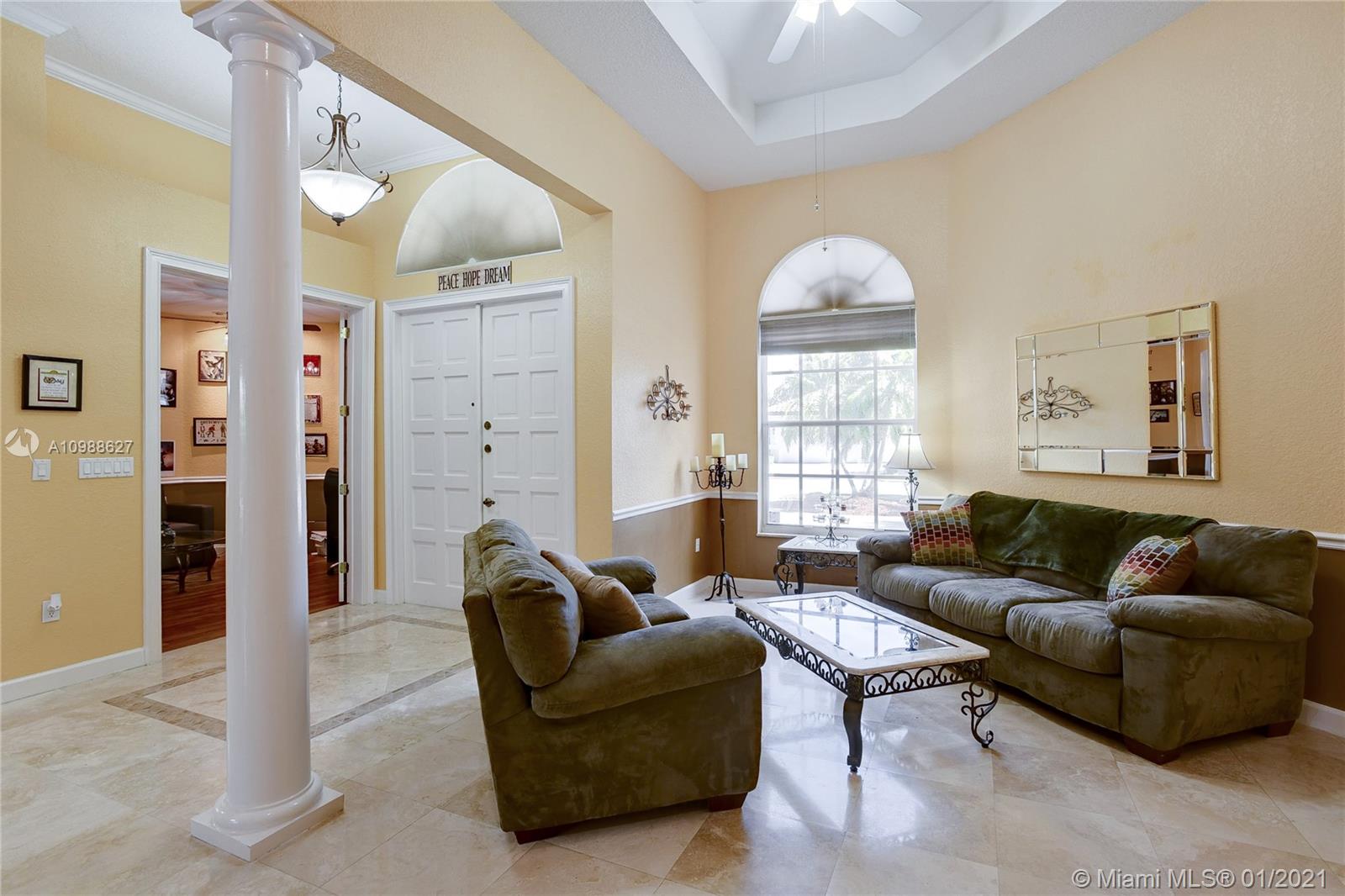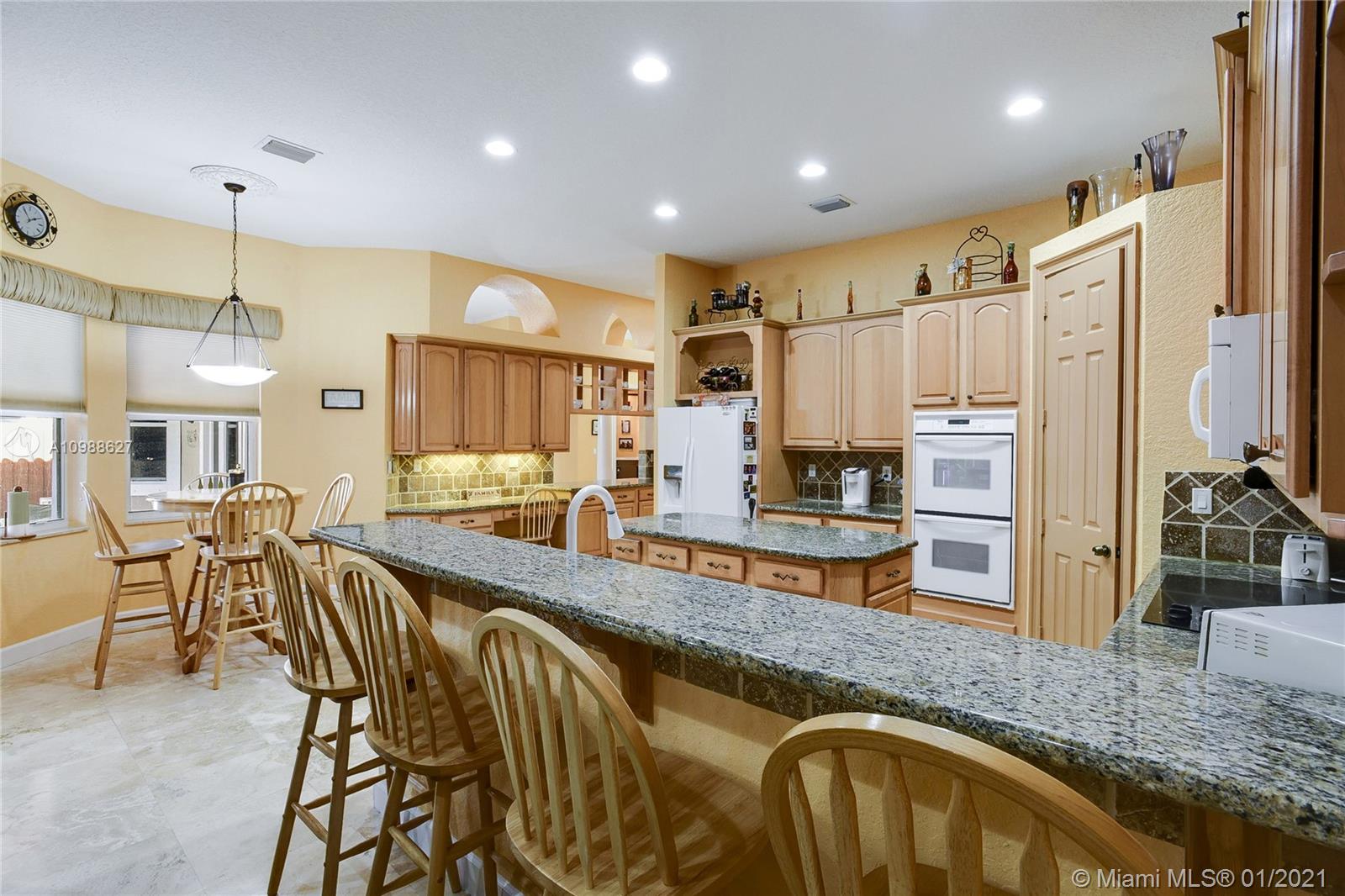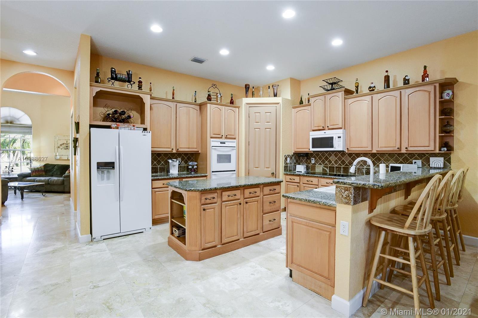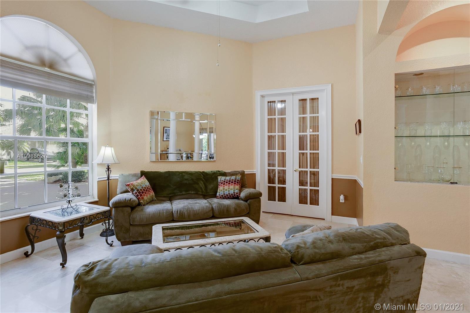 Beautiful 5-Bedroom Pool Home PLUS Den (6 rooms) in Desirable Westport Neighborhood! Don't Miss this Gorgeous and Upgraded Home which Features a Three Way Split Floor Plan, Travertine Marble Floors in Living Areas, High Ceilings Throughout, Wired Security Cameras, Speaker System, Newer A/C Units, Coffered Ceilings, Circular Paved Driveway, Spacious Master Bedroom with His and Hers Closets, 2nd and 3rd Bedroom with "Jack and Jill" Bathroom, Hurricane Shutters, French Doors and much more. Enjoy the Blissful Covered Patio with Paved Deck, Fenced Backyard, Beautiful Landscaping, Pool/Jacuzzi with Salt-Chlorination System, Multi-Color Led Lights and Heater. Sprinkler System in Front and Backyard. Third car garage was converted to a Den and it can be easily converted back.