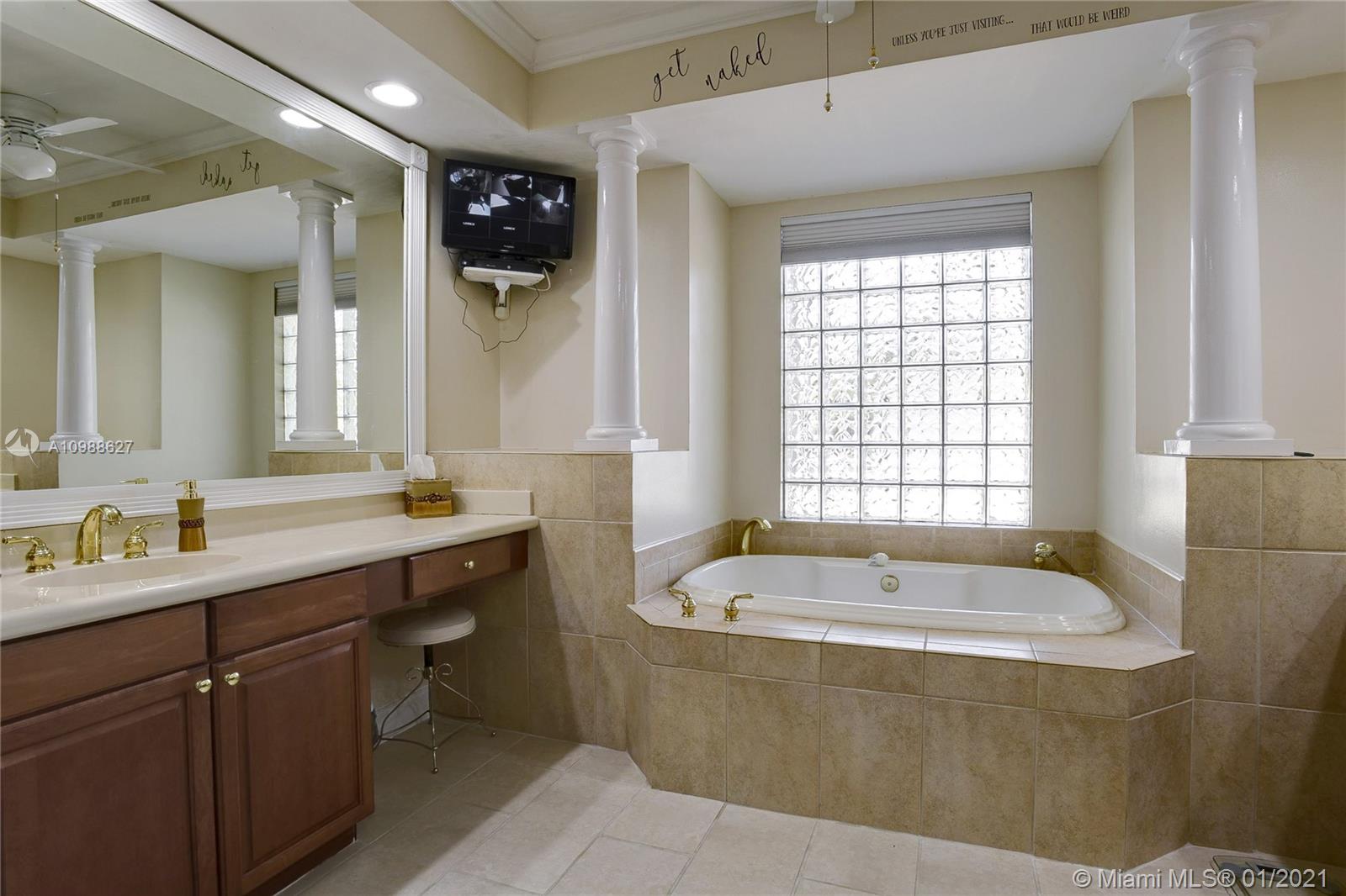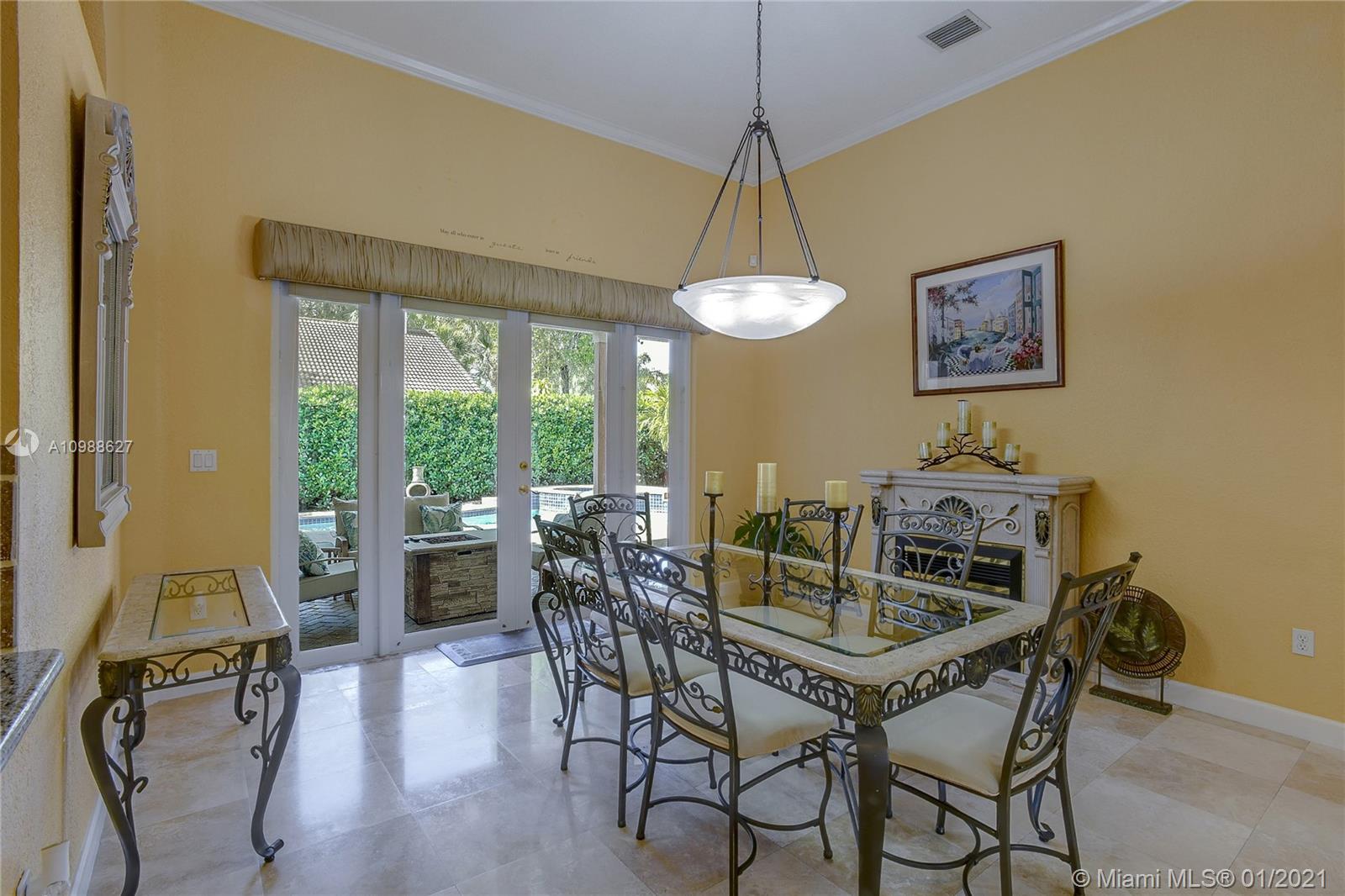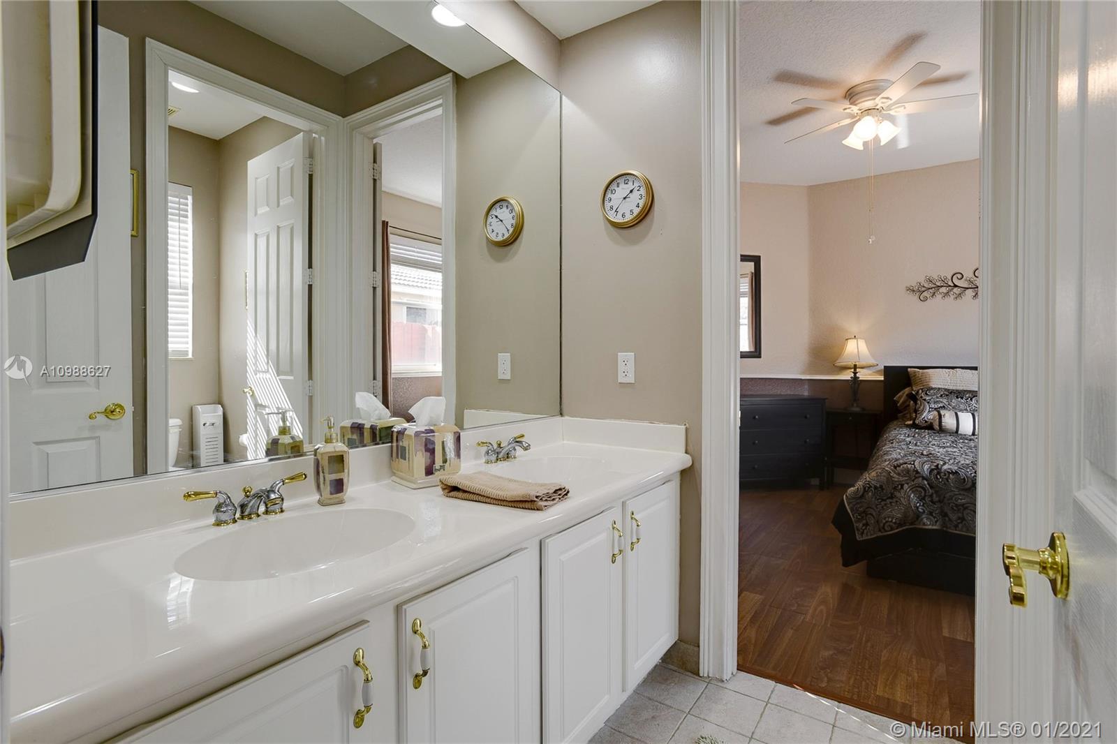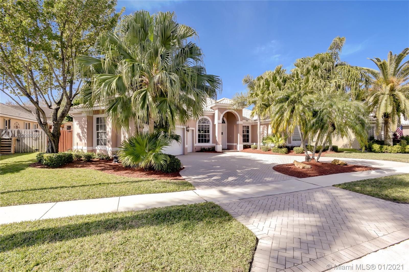 Beautiful 5-Bedroom Pool Home PLUS Den (6 rooms) in Desirable Westport Neighborhood! Don't Miss this Gorgeous and Upgraded Home which Features a Three Way Split Floor Plan, Travertine Marble Floors in Living Areas, High Ceilings Throughout, Wired Security Cameras, Speaker System, Newer A/C Units, Coffered Ceilings, Circular Paved Driveway, Spacious Master Bedroom with His and Hers Closets, 2nd and 3rd Bedroom with "Jack and Jill" Bathroom, Hurricane Shutters, French Doors and much more. Enjoy the Blissful Covered Patio with Paved Deck, Fenced Backyard, Beautiful Landscaping, Pool/Jacuzzi with Salt-Chlorination System, Multi-Color Led Lights and Heater. Sprinkler System in Front and Backyard. Third car garage was converted to a Den and it can be easily converted back.