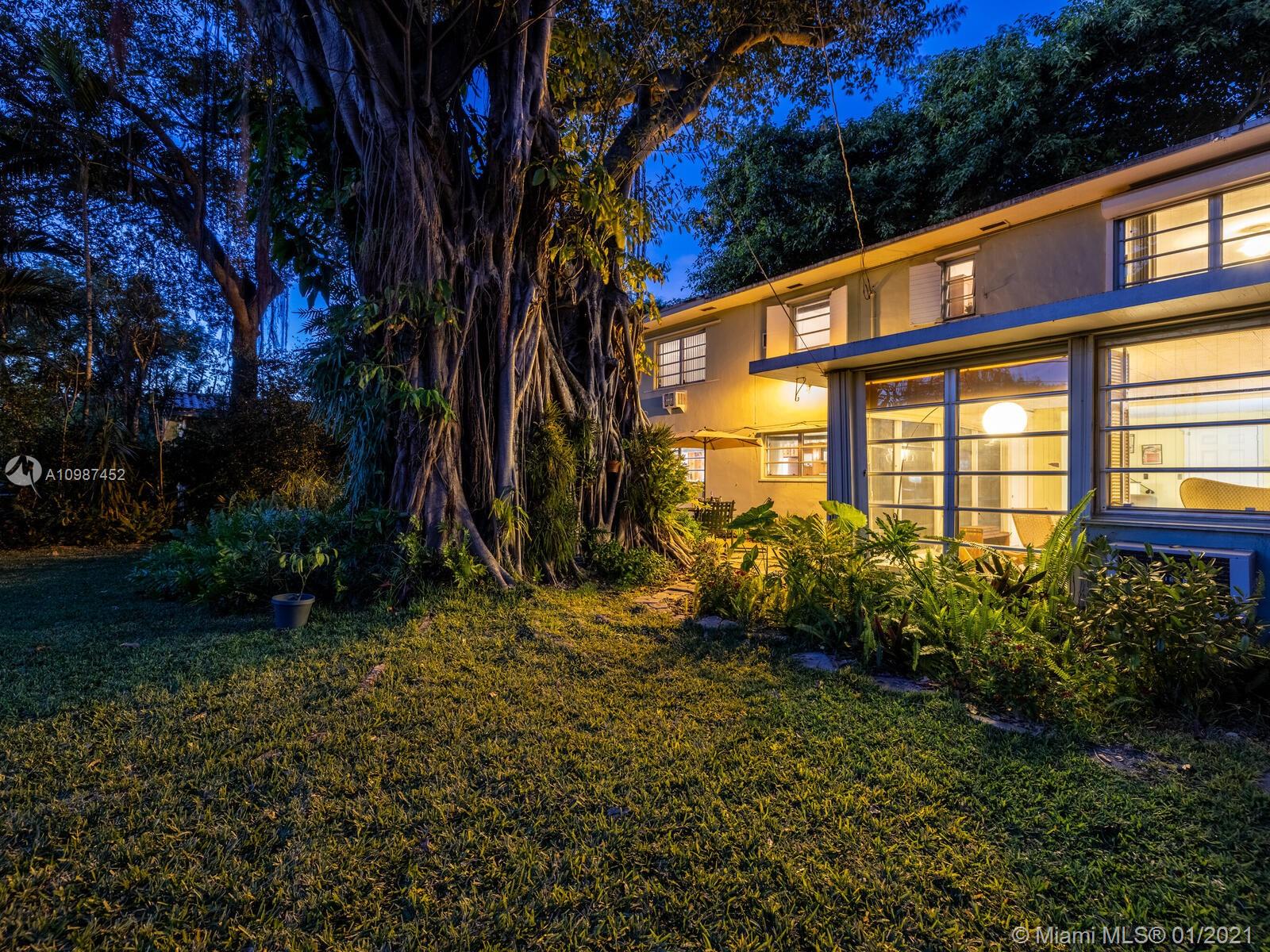 Welcome to The Banyan House! This Art Deco jewel designed by famed architect Robert Law Weed in 1937 is ready to update into your dream home! Great space to reimagine how you want to live. Bright open living with full-wall windows, vintage knotty pine kitchen, large bedroom suite downstairs—so get your ideas going! Signature whimsical curved staircase leads to 3 bright bedrooms with tons of windows. Relax, grill and entertain under your huge banyan-covered patio overlooking the magical garden filled with tropical foliage. You’ll fall in love with the Old Florida charm, Deco flair and famed creator! Own one of the few remaining Art Deco homes in South Florida. Priced right, so let your imagination run wild! Incredible location in highly desirable Central Miami Shores.
