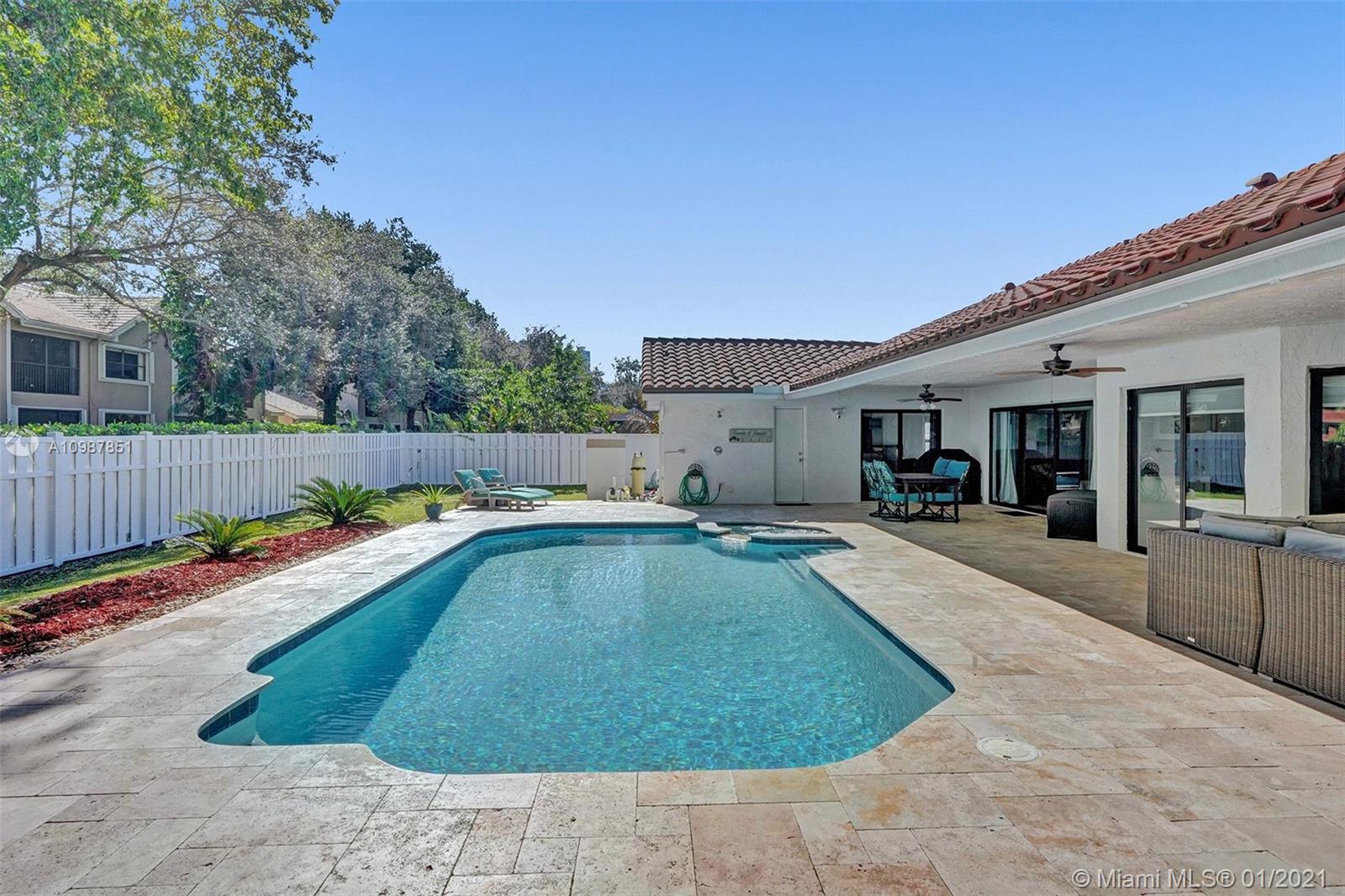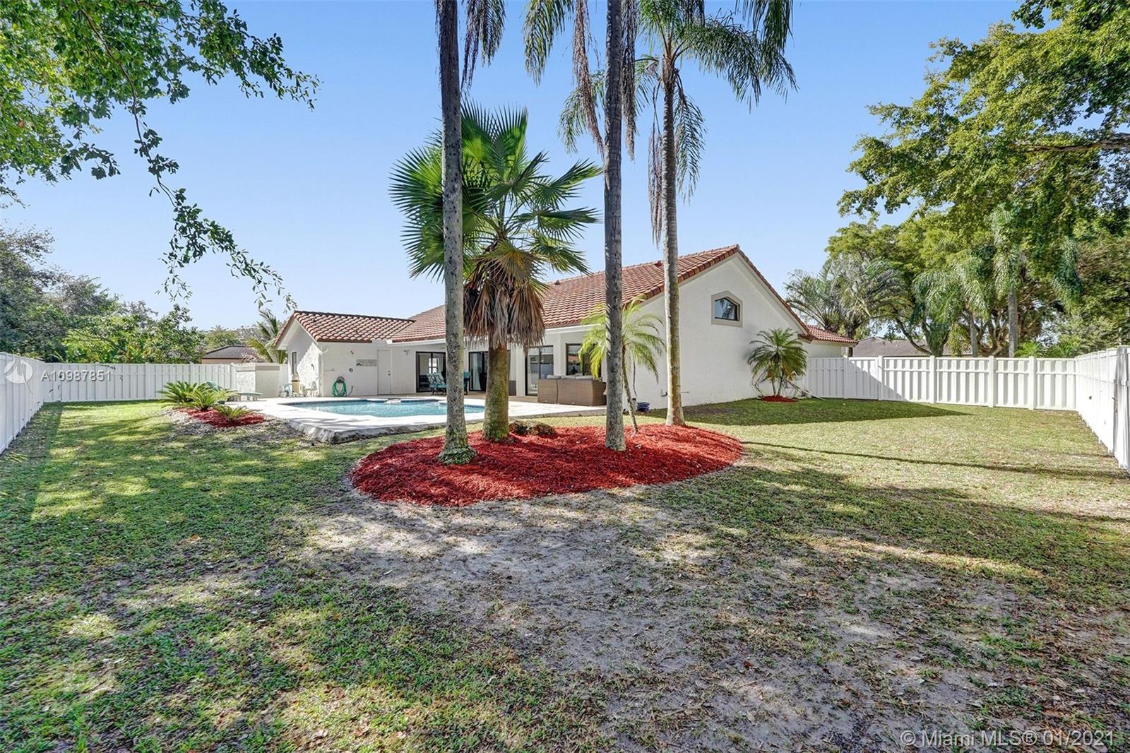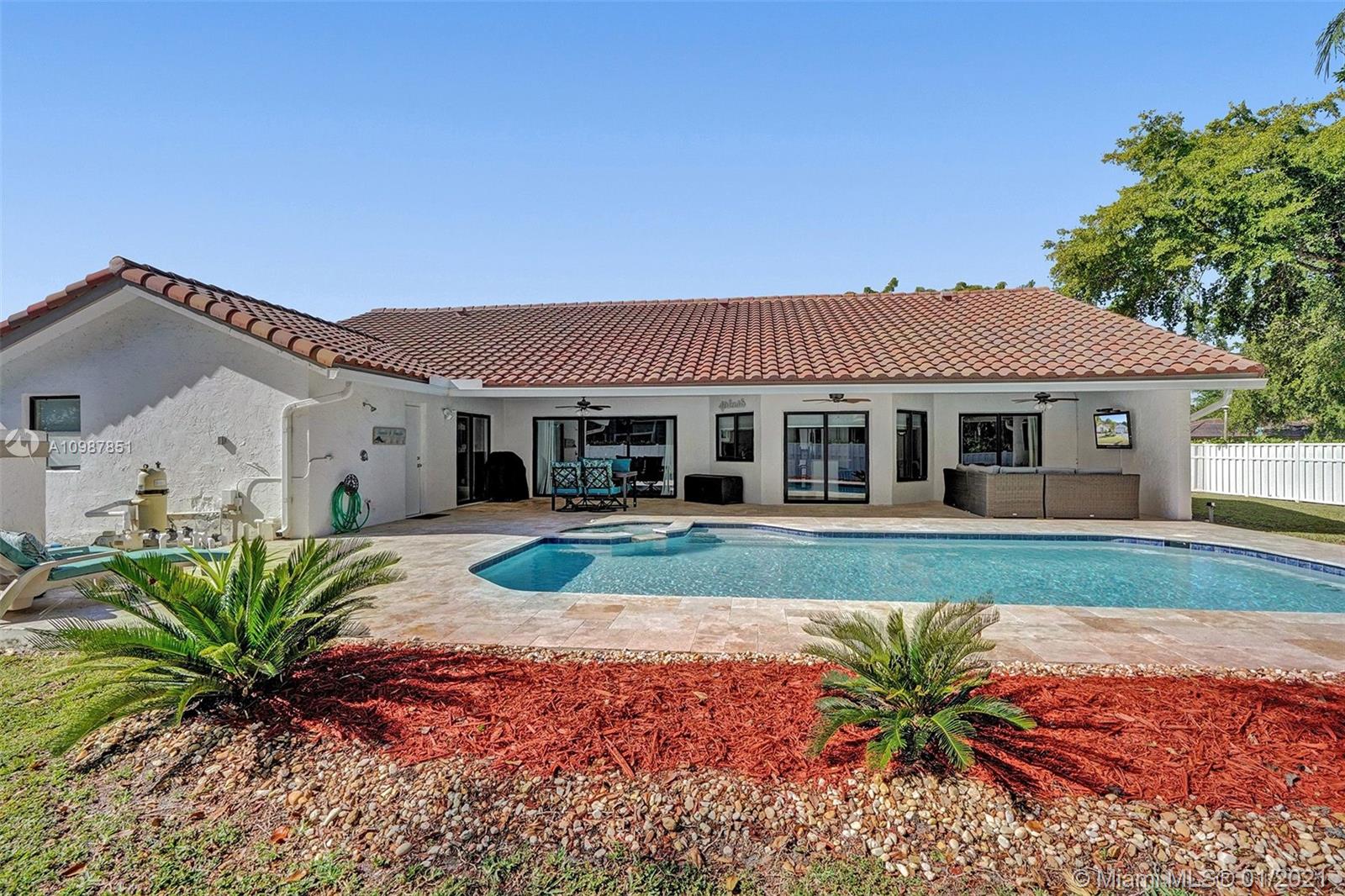 Welcome to this beautiful 4 bedroom 3 bath pool home located in the quiet neighborhood of Oakwoodin Coral Springs. The home has impact windows, tile flooring throughout, updated kitchen and bathrooms. It offers a split floor plan and amazing views of the backyard throughout the home. The travertine paved patio is an entertainer's oasis with room for everyone. This one will NOT last!