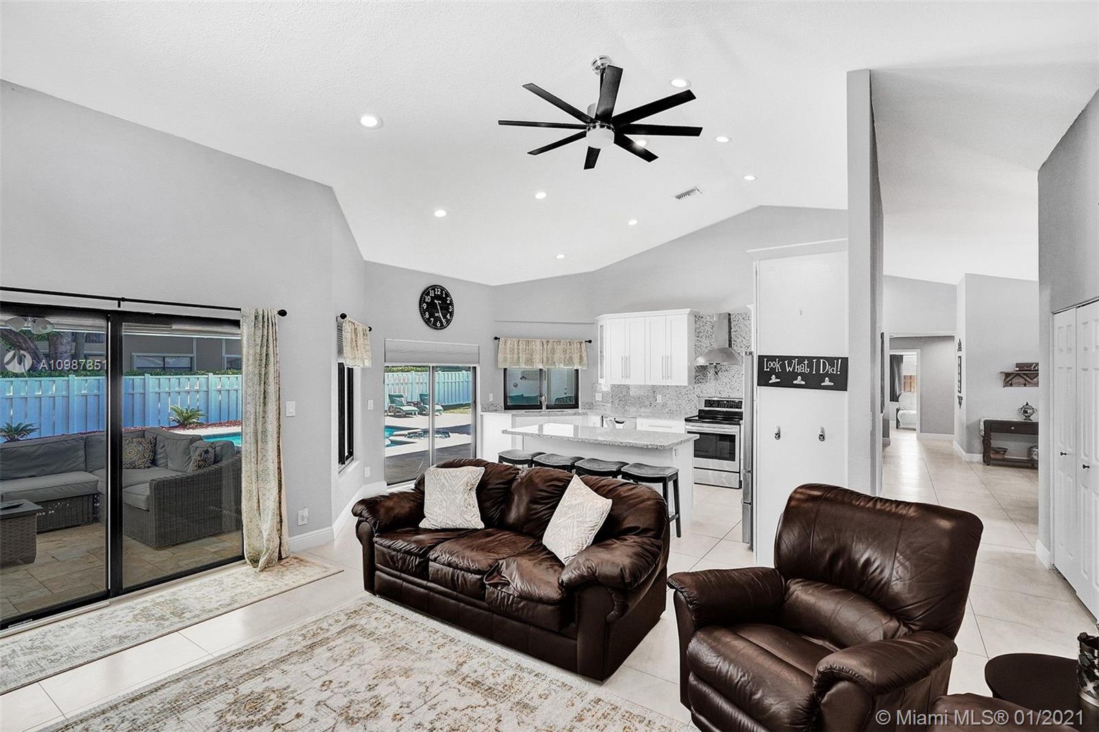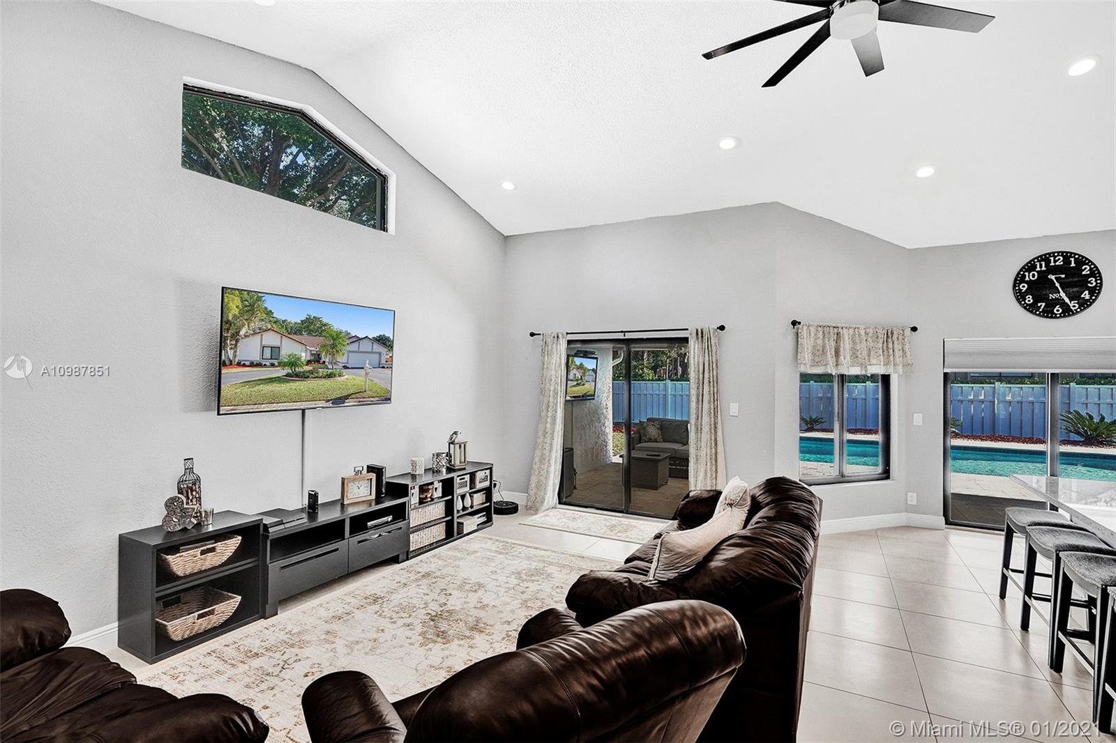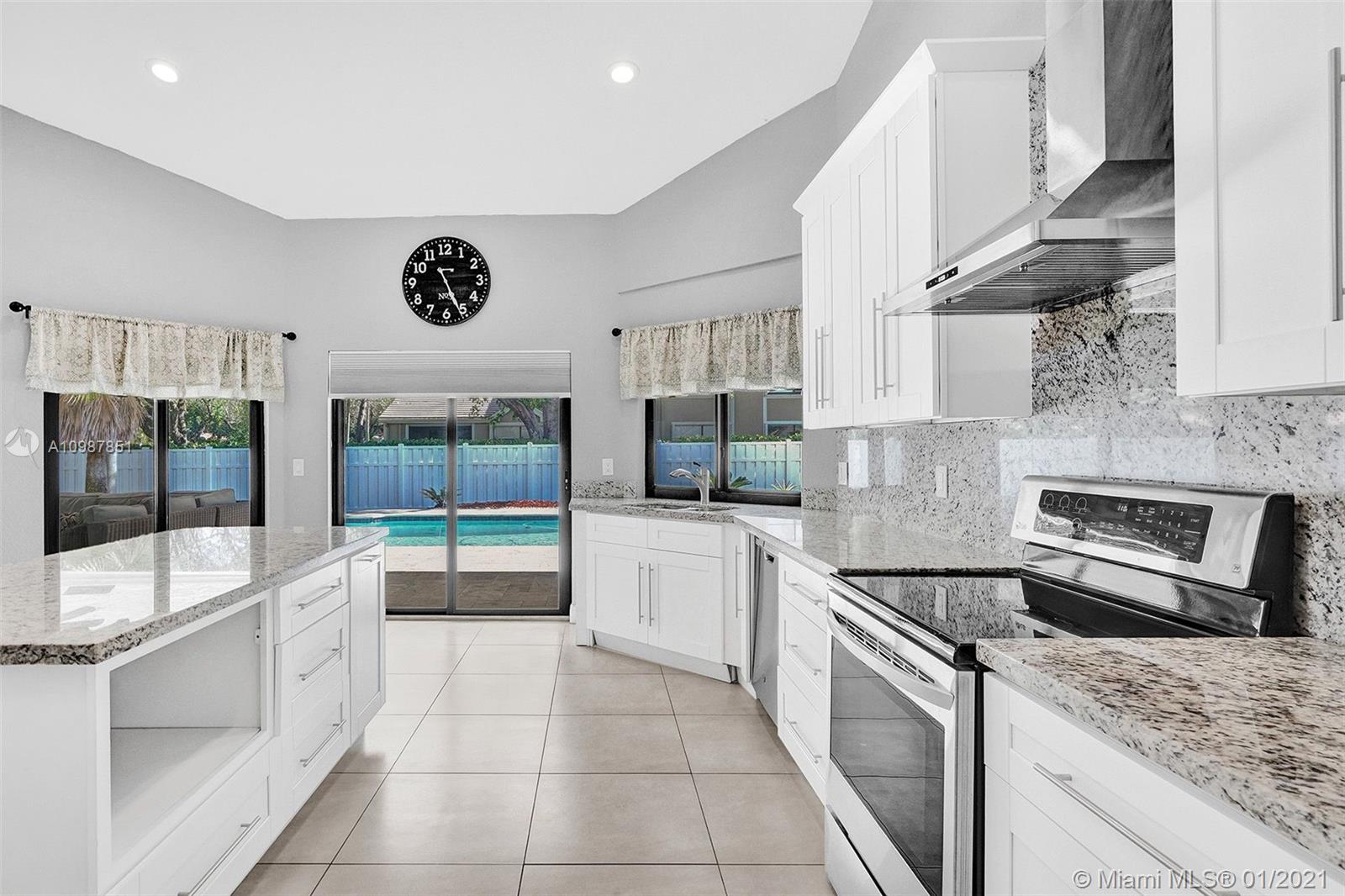 Welcome to this beautiful 4 bedroom 3 bath pool home located in the quiet neighborhood of Oakwoodin Coral Springs. The home has impact windows, tile flooring throughout, updated kitchen and bathrooms. It offers a split floor plan and amazing views of the backyard throughout the home. The travertine paved patio is an entertainer's oasis with room for everyone. This one will NOT last!