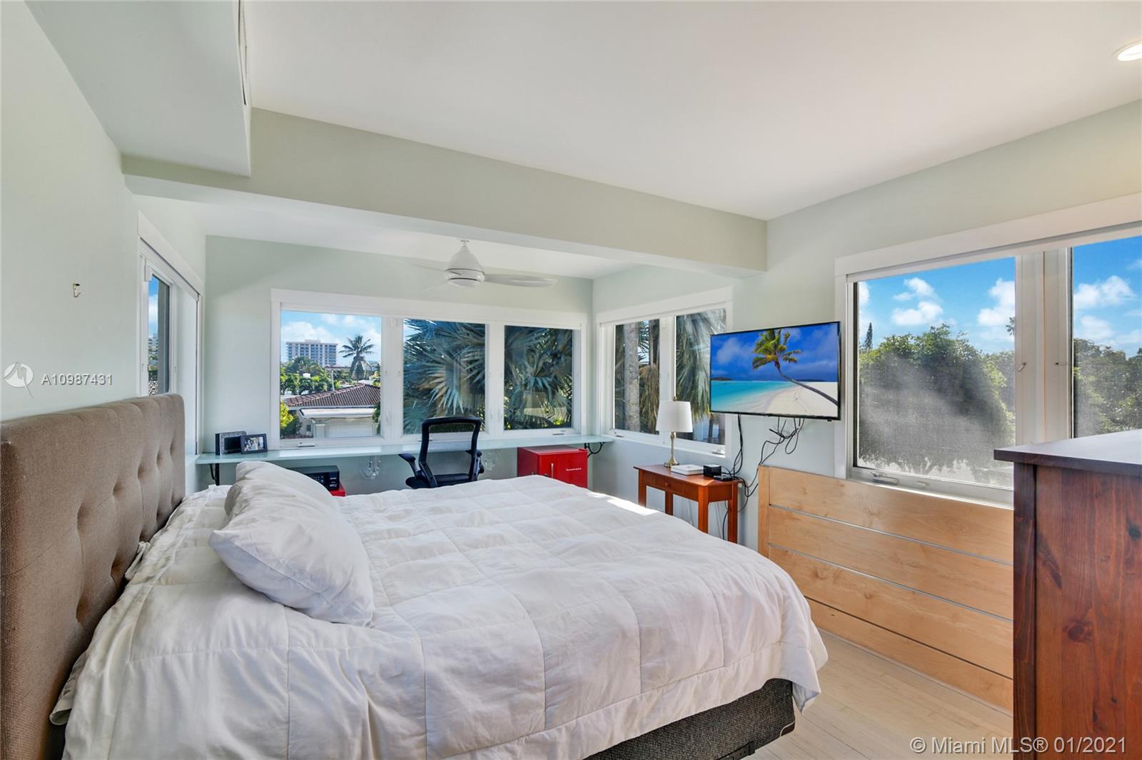 Flawlessly renovated, modern residence with 2800 square feet in the charming oceanfront Town of Surfside. Open floor plan with 3 bedrooms, 2 renovated bathrooms, and a 1-car garage that's currently used as an office. The upstairs master suite has a new, spa-like bathroom & dressing area with plenty of closet space. Gourmet stainless steel kitchen with a 5-burner gas stove. Also featuring: smart home technology, terrazzo & wood floors, updated electrical & plumbing, new tankless gas water heater, separate laundry room & hurricane impact windows/doors. Large fenced backyard with a pergola & tropical landscaping, complete with dramatic lighting. Walk to the beach, Four Seasons Surf Club, Downtown Surfside & Bal Harbour Shops. A+ Bay Harbor schools. Take a 3-D tour using the link provided!