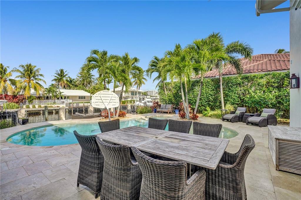 No expense spared in this exceptional expansion and remodel of this "Traditional Coastal" home. Located one house from the Intracoastal with 115' of Deepwater Dock this home offers exceptional views, massive outdoor living space and dockage for up to 105' of vessels. Rebuilt like new over the last several years including: seawall and dock, roof, new pool and spa, all PVC sewer lines and all Hurricane Impact Windows and Doors. Incredible master suite offers large sitting room, high ceilings, two massive walk in closets and private balcony overlooking the Intracoastal. Large living spaces perfect for entertaining. Five bedrooms + office + upstairs kids family room. All baths redone and 4 of the bedrooms have private baths. Generator ready. Huge garage and massive driveway space.