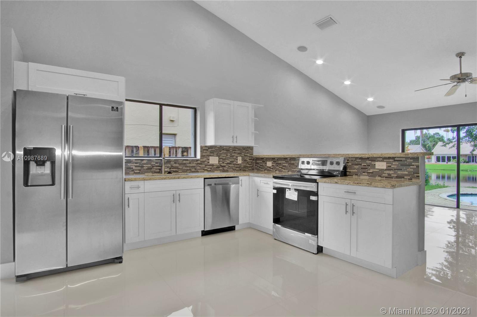 NEW 2020 ROOF WITH 10 YEAR WARRANTY, NEW 2020 A/C, STUNNING CORNER WATERFRONT/POOL HOME WITH VAULTED CEILINGS, HUGE MASTER BEDROOM WITH 2 BIG WALK-IN CLOSETS, COMPLETELY REMODELED IN 2020 WITH NEW INTERIOR PAINT, NEW LUXURIOUS BIG FORMAT PORCELAIN FLOORS IN SOCIAL AREAS AND BATHROOMS, TOP QUALITY LAMINATE FLOORS IN BEDROOMS AND CLOSETS, NEW KITCHEN, NEW STAINLESS STEEL APPLIANCES, NEW GRANITE COUNTERTOPS, NEW WATER HEATER (2020), NEW BATHROOMS, NEW LIGHTING, NEW WHOLE HOUSE LANDSCAPING, TRANSFER SWITCH FOR A GENERATOR, ACCORDION SHUTTERS, GARAGE CONVERTED IN A 5TH UTILITY ROOM, LOCATED IN A PEACEFUL, FAMILY ORIENTED AND VERY WELL MAINTAINED NEIGHBORHOOD.