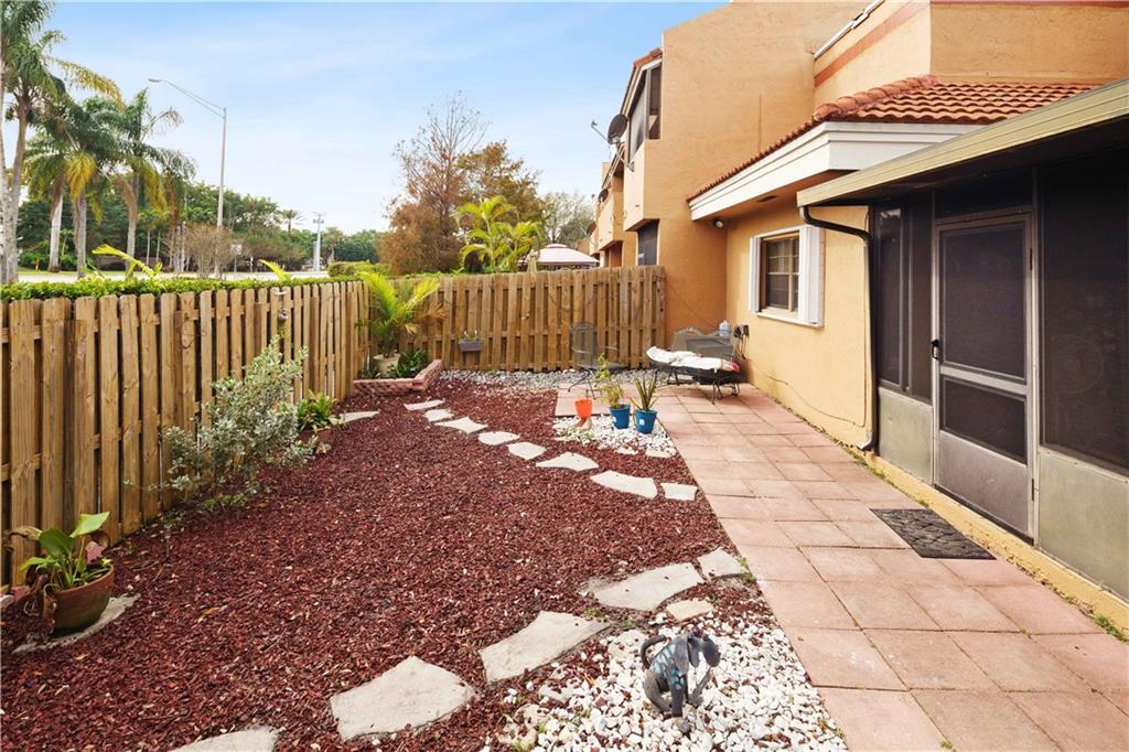 Perfect for first time home buyers! Open plan, corner unit in quiet neighborhood. Stunning updated kitchen equipped w/ stainless steel appliances, granite countertops, wood cabinets & plenty of storage. Spacious living/dining areas are perfect for entertaining. Tile floors throughout perfect for pets! Laminate floors in bedrooms easy to clean. Spacious master has beautiful remodeled bath. Partially converted garage offers extra storage space, ideal office or gym. Newly rescreened fenced back patio. No side neighbors. Next to large open lot. New AC & roof. Accordion shutters. 2 parking spaces in driveway & 1 assigned spot. Community pool. Located near The Shops at Pembroke Gardens, Pembroke Lakes Mall, Memorial Hospital West, restaurants, grocery stores & rapid access to I-75 & Turnpike.