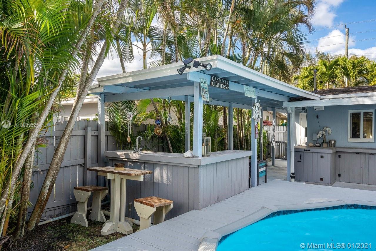 Live the Florida lifestyle in this ocean access waterfront 3 bed/2 bath pool home in Fort Lauderdale. This updated home features Impact glass, a newer AC and pool pump, laundry room and pantry. Expansive outdoor entertaining area featuring a pool, separate spa, covered bar area, storage, and a lighted 20 foot dock. There is ample parking behind the front gates to store an RV or a trailered boat. Located in an established neighborhood with no HOA and close to amenities including a community boat slip and parks just blocks away.
