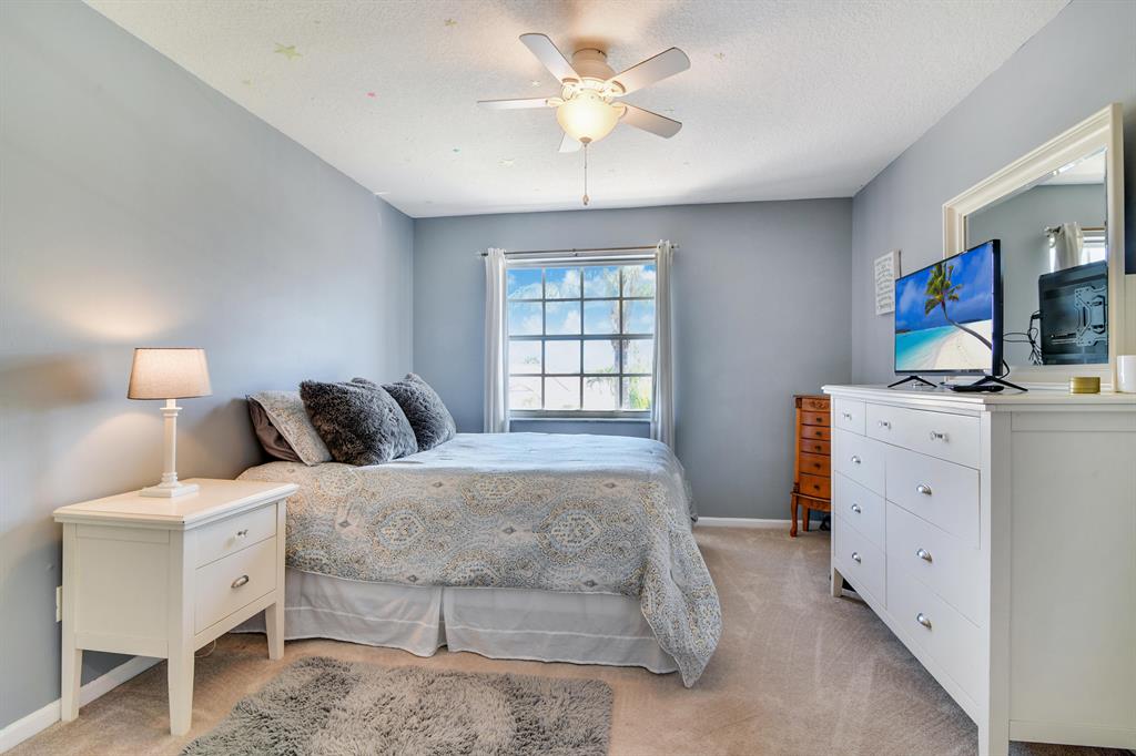 Gorgeous 5 bedroom 3 bathroom 2 car garage home in desirable Waterways of Boca Winds. Enormous pie shaped private lakefront lot. Brand New Roof with fresh contemporary exterior paint. Spacious open concept floor plan with volume ceilings and long lake views from nearly all windows. Light and bright tile flooring with durable vinyl in the dining room, formal/office, and 5th bedroom. Kitchen boasts 42'' cabinets, large snack bar, and inviting eat in dining. 5th bedroom is downstairs with a full bathroom. Dream size screened patio overlooks the oversized backyard and quiet lake views. Super Low HOA of $114. Walk or bike to ''A'' rated schools. clubhouse, pool, tennis, basketball, playgrounds, fishing, and more. Minutes to amphitheater, dog park, water park, skatepark, and 27 hole golf course.