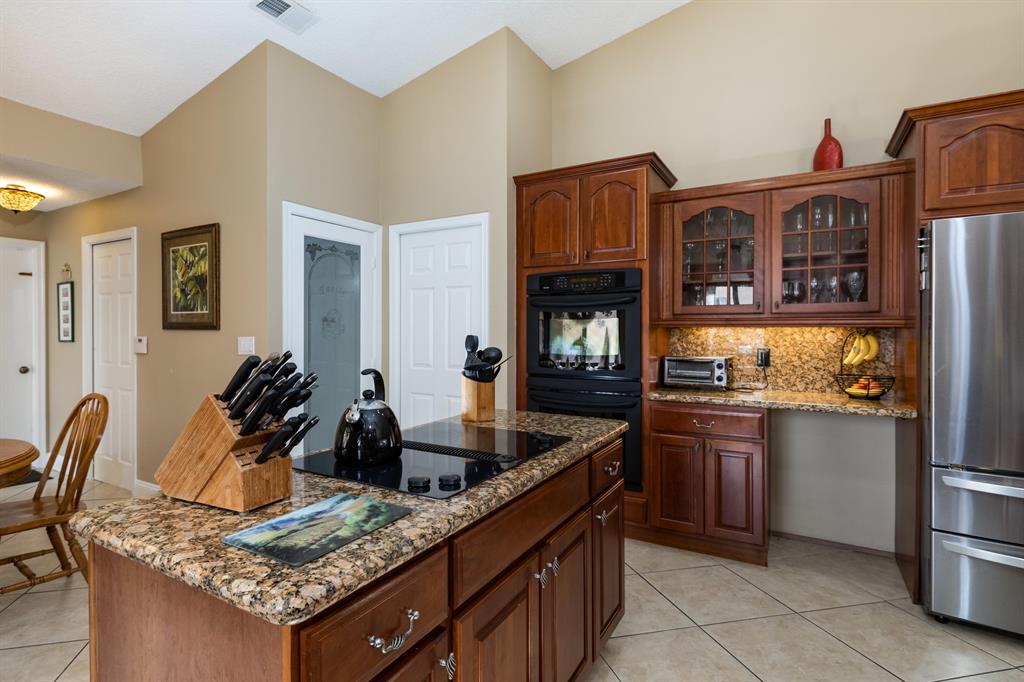 Beautiful one-story home in highly sought after Boca Tierra/Lakewood Oaks. This 4- bedroom, 2.5 bath home offers a fabulous kitchen including an island, large pantry, granite countertops, and gorgeous cabinets with underlighting all around. The master bedroom with en suite bath includes two walk-in closets. The home also boasts a large screened in patio with built in hot tub and waterfall. Storm protection is provided by recently installed hurricane windows, including a beautiful double front door. The home has a dual-zoned AC system. The property also includes a full sprinkler system. You do not want to miss out on this gorgeous home in this fabulous community.
