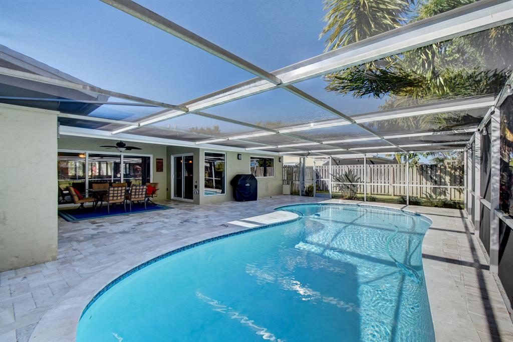 Don't miss this Beautifully remodeled home! Resort style pool overlooking canal. Pool renovation completed in 2019 includes Travertine deck, gas pool heater and Diamond Bright, pool pump. Impact hurricane windows and doors throughout. Interior has too may upgrades to list. Crown molding in bedrooms, Granite countertops, Travertine kitchen floors, Gas Range, Stainless Steel appliances, Porcelain wood tile in bedrooms, Plantation shutters, Custom closets, Surveillance system. Do not wait this home will not last!!
