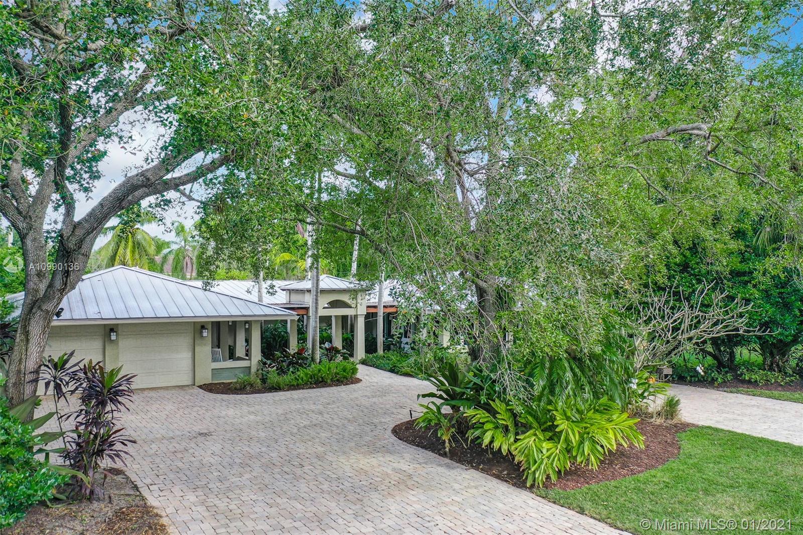 Paradise found! Located on a quiet street in Pinecrest, this Key West style home provides comfortable living and great entertainment spaces inside and out. The split bedroom plan offers a master suite with sitting room, study and large walk through closet. Wood details, bar, cabana bath and oversized laundry room. Large covered terrace, built in BBQ, professionally and beautifully landscaped backyard, freeform salt water pool/spa, with water feature, and hard surface tennis court. Metal roof, large 2 car garage and whole house generator. Pinecrest/Palmetto schools. Informal elegance at its best.