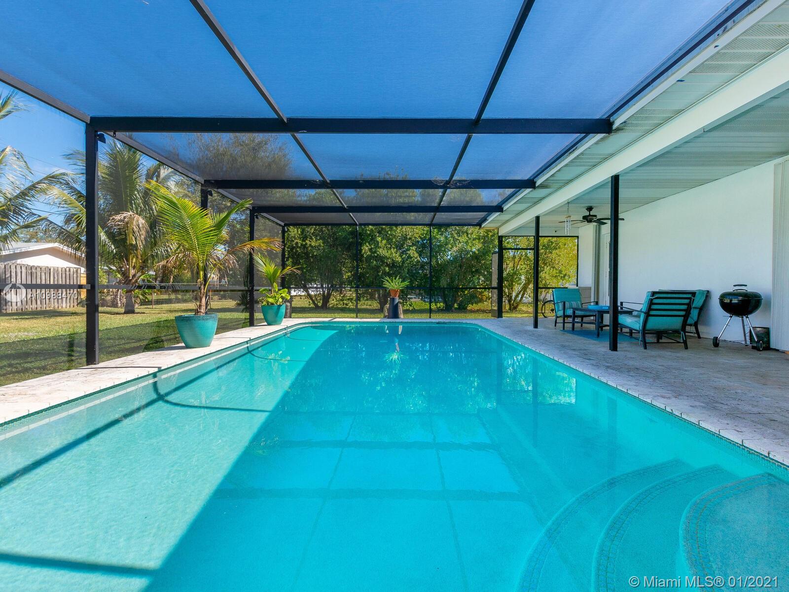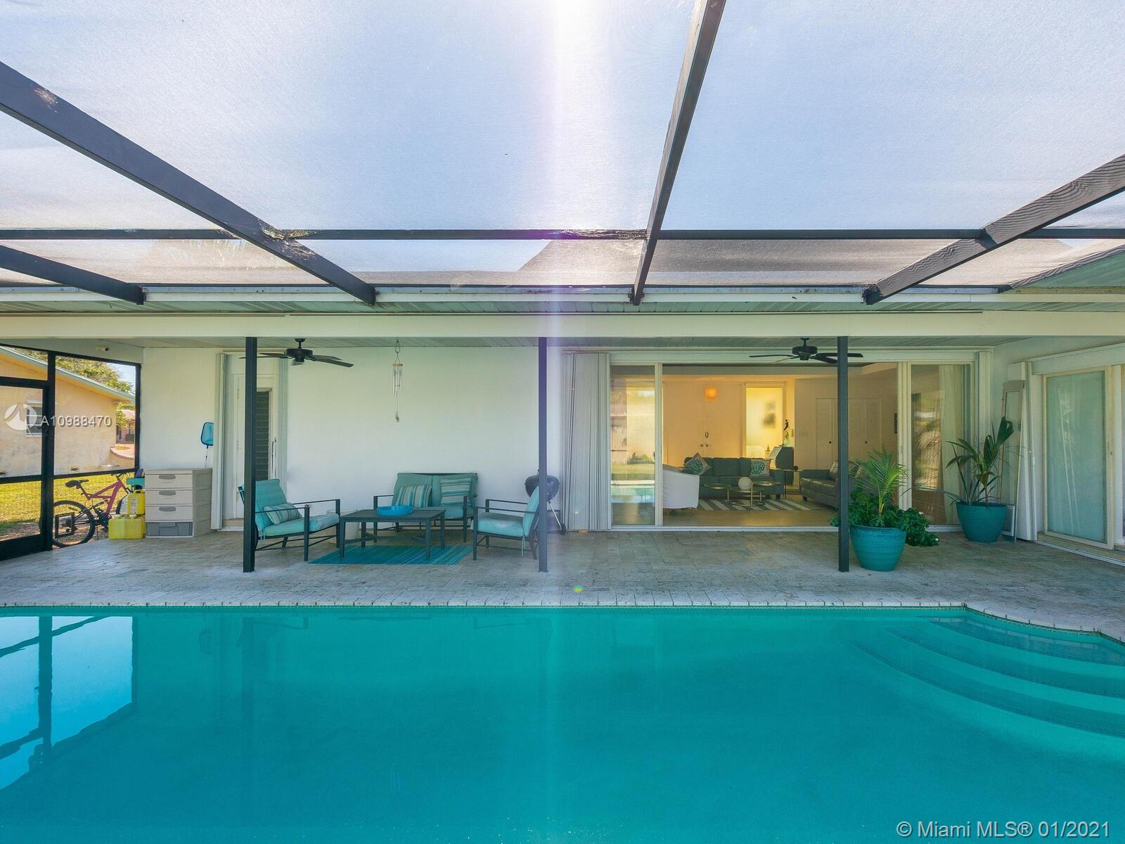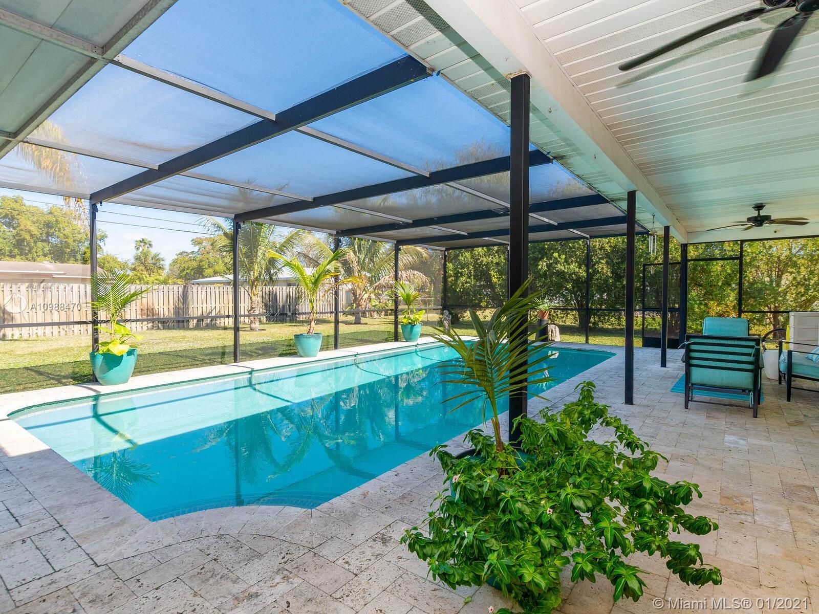One of a Kind Mid Century French Home in the Heart of Plantation Secluded Gardens offers 4 Bedrooms and 2.5 Baths. This Spacious Split Floor Plan allows views of the Heated Pool through Livingroom Bay Windows. Amenities include Stainless Steel Appliances, New Wood Laminate Floors throughout, 2 New Water Heaters, Full Hurricane Protection, New Travertine Pool Deck, Newer Roof, 2 Cabana Baths, Extra Large Master Closet, Spacious 2.5 Car Garage, and Circular Drive.