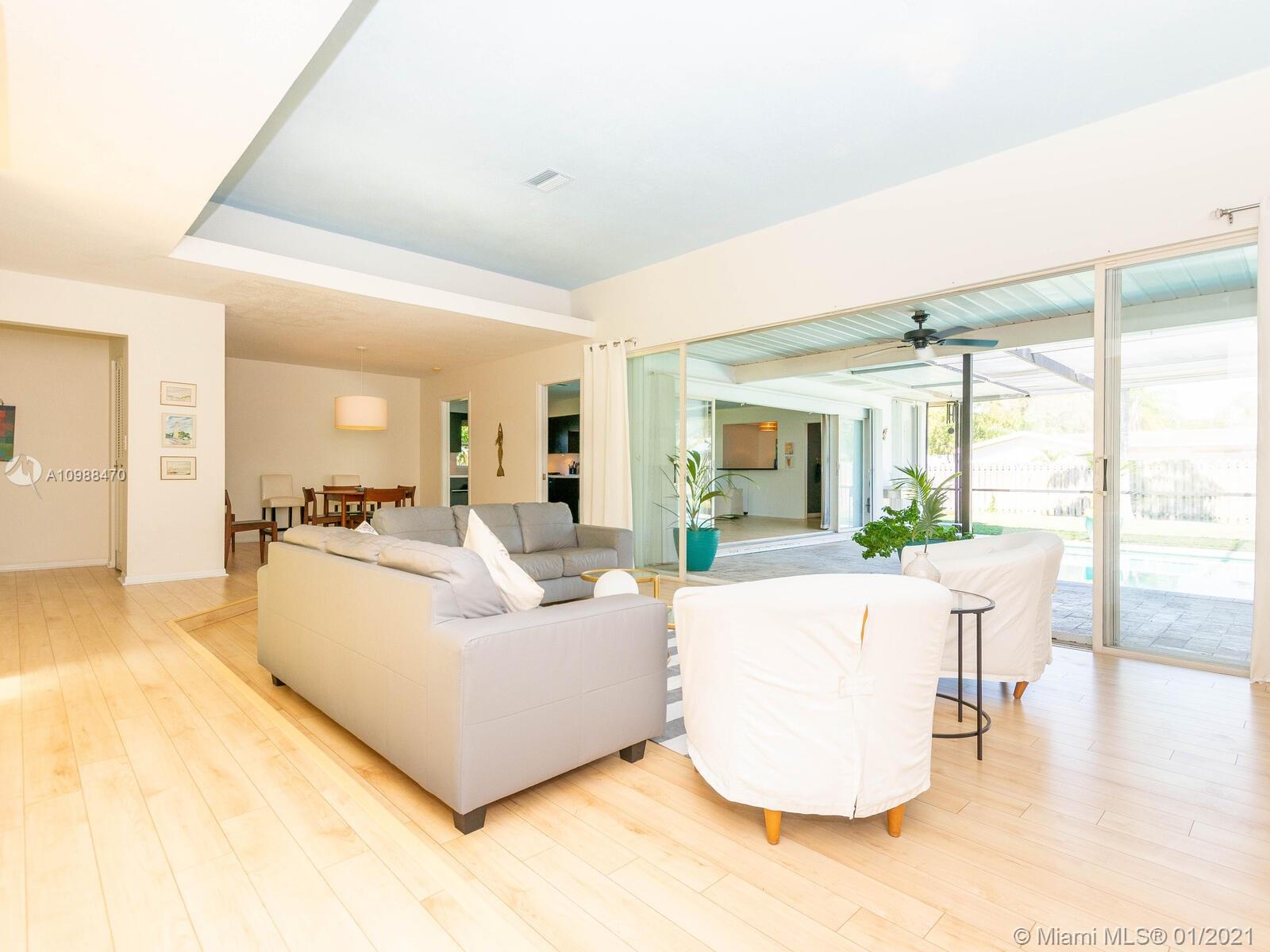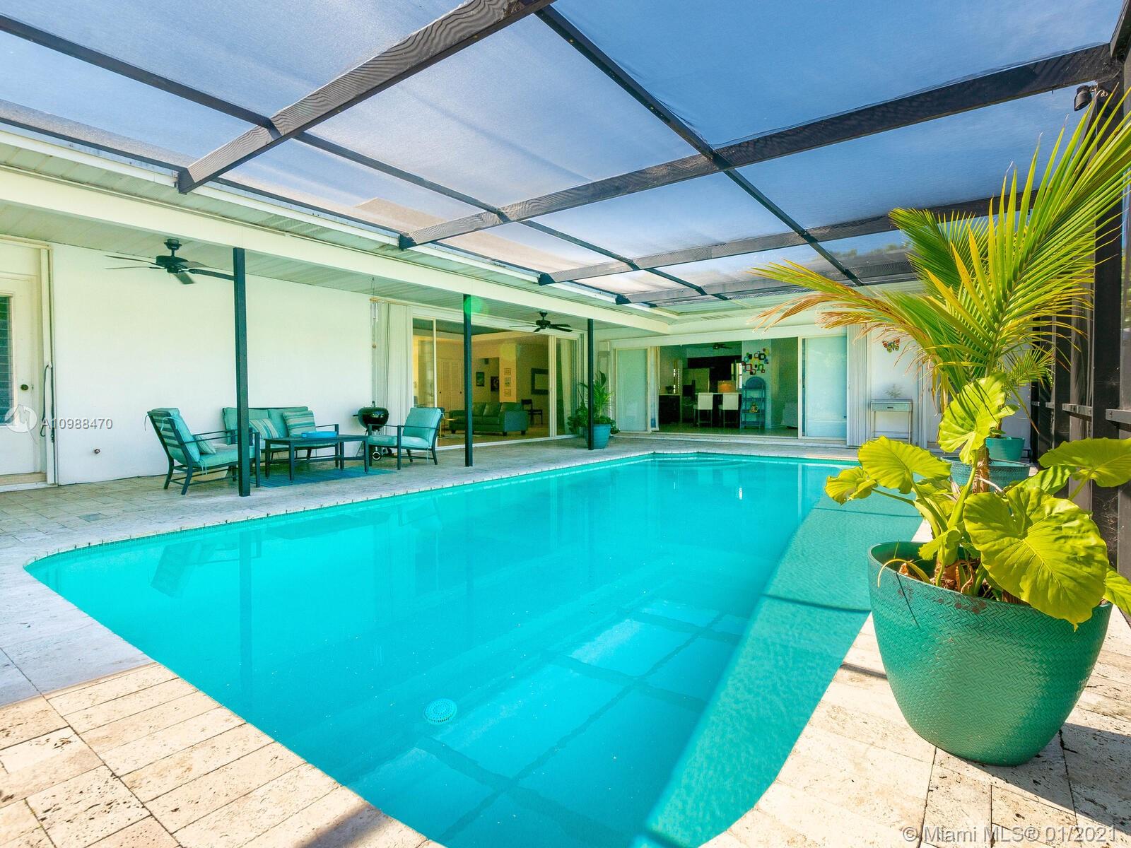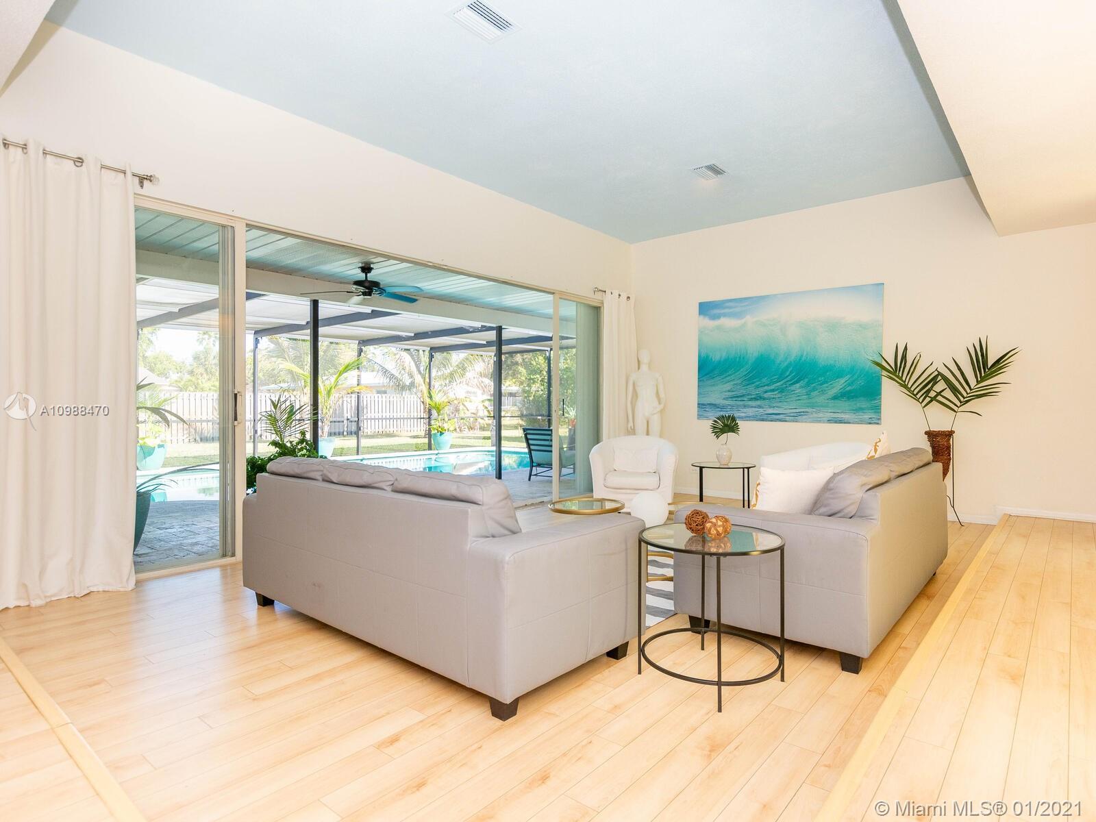 One of a Kind Mid Century French Home in the Heart of Plantation Secluded Gardens offers 4 Bedrooms and 2.5 Baths. This Spacious Split Floor Plan allows views of the Heated Pool through Livingroom Bay Windows. Amenities include Stainless Steel Appliances, New Wood Laminate Floors throughout, 2 New Water Heaters, Full Hurricane Protection, New Travertine Pool Deck, Newer Roof, 2 Cabana Baths, Extra Large Master Closet, Spacious 2.5 Car Garage, and Circular Drive.