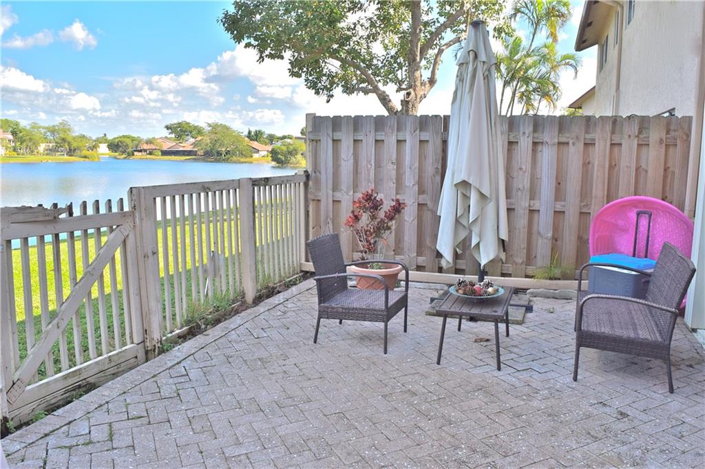 Large, updated townhouse in desirable Sunrise community w/beautiful lake views. Upgrades include large tile floors downstairs, laminate flooring upstairs, beautiful kitchen offering granite countertops, wood cabinets, & S/S appliances. Bathrooms updated. Large master bedroom features custom walk-in closet. Updated master bath offers spa tub. This beautiful townhouse also offers a large storage room. The pavered backyard overlooks the beautiful lake & is fenced without disturbing your view. Pet friendly community. FHA welcome. Accordion shutters. Association fees include water, roof, insurance, outside maintenance and amenities. Community offers pool, basketball court, tennis court, & covered picnic area. Great location near highways, shopping, restaurants, & more. A must see.