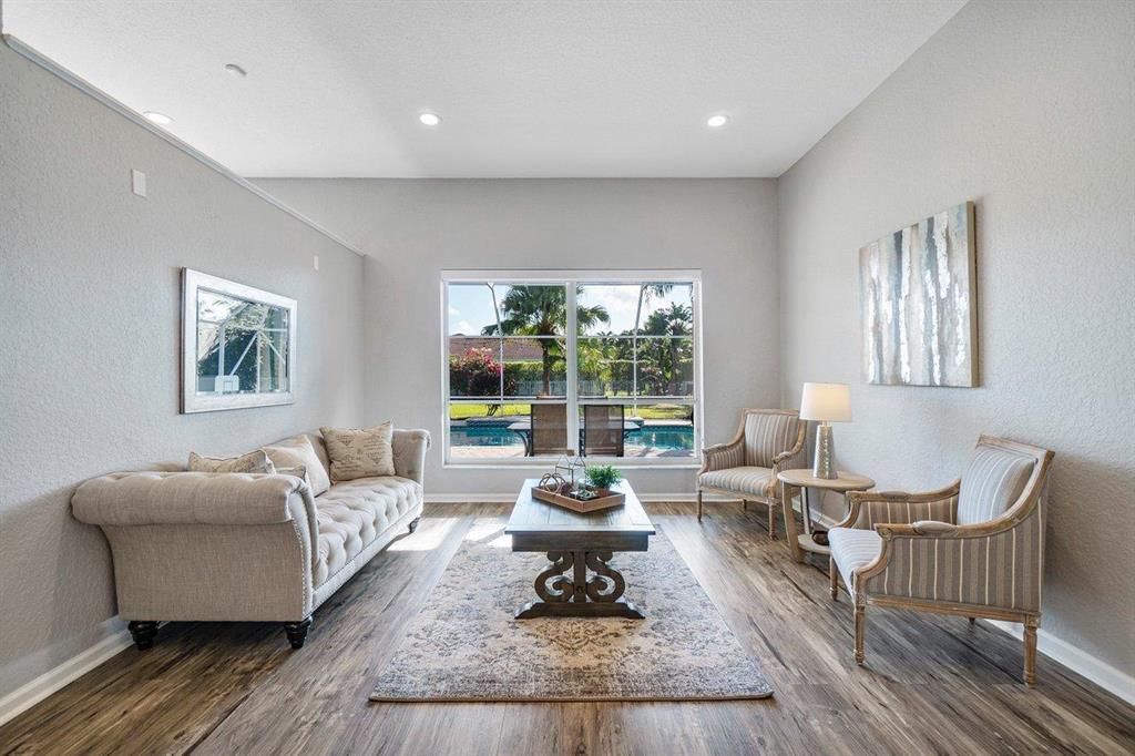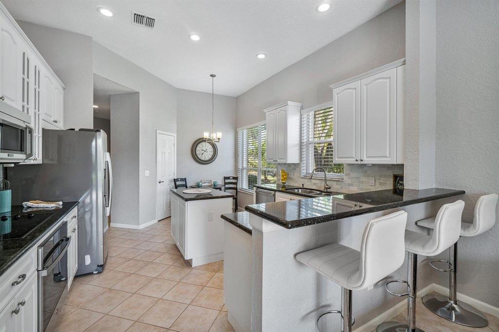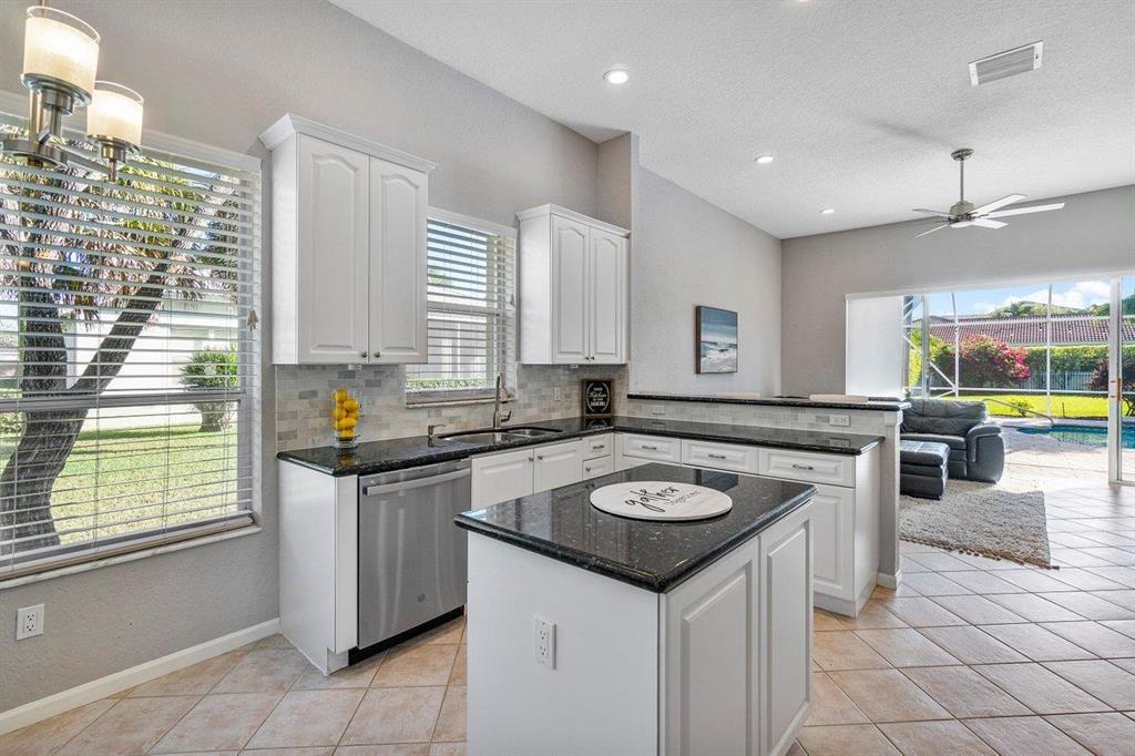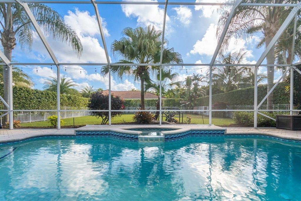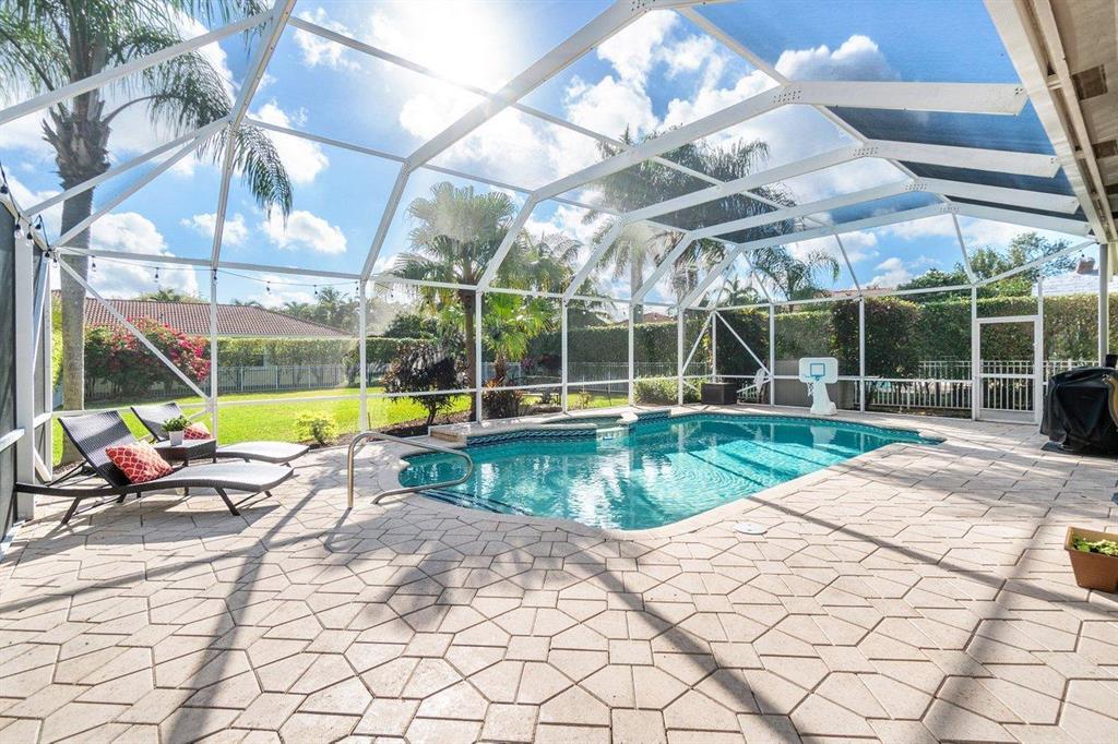 This beautiful light, bright & move-in ready 4 bedroom, 3 full bath pool home with an over-sized fenced in private yard is located in fabulous Emerald Isle of Boca Falls. This home features an updated kitchen with 42'' custom white cabinetry, granite counter tops, stainless steel appliances, updated bathrooms, neutral tile, neutral paint colors, vaulted ceilings, LED lighting, keyless entry, and the list goes on. Even more fabulous than the house itself is the amazing outdoor living space. Enjoy your morning coffee from the screen enclosed patio with a large custom inground pool, & just behind is a spacious & picturesque backyard. Additional upgrades include accordion shutters, a hurricane impact garage door, & a sleek new impact front door. Cable and internet included in HOA.