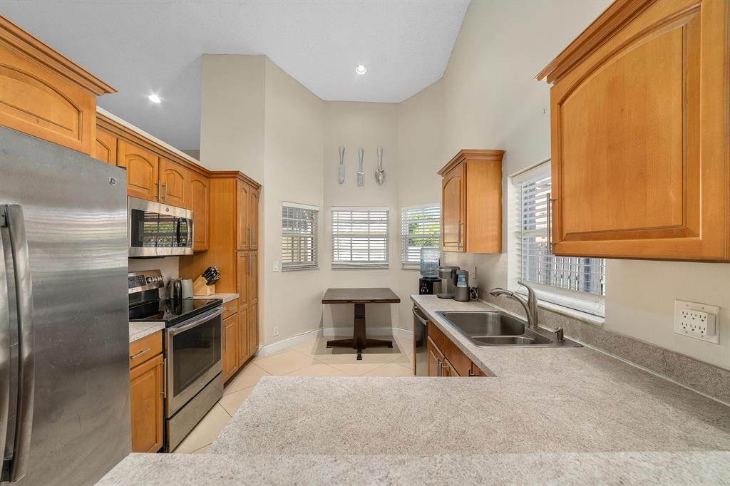 Move right into this updated single family home in Boca Raton which has stunning porcelain tile floors throughout, vaulted ceilings in the living area, kitchen with stainless steel appliances and wood cabinets and much more. The property also has a screened-in outside area and is fully fenced. Additionally, the A/C and washer/dryer are newer. Boca Landings offers a low HOA and a nice community area with Olympic size pool, kiddie pool, basket ball court, tennis, racquet ball and a tot lot.