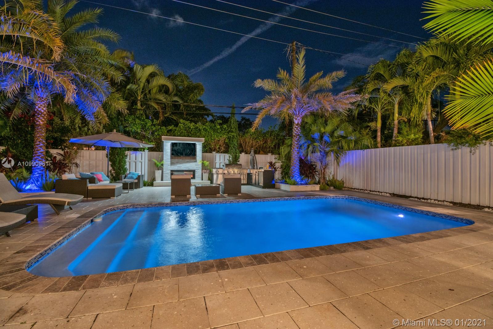 The combination of great location and high standards living. Located 5 min from Las Olas and 10 min from Fort Lauderdale Beach. This property offers immaculate, professionally designed two-story vaulted ceiling, with a beautiful kitchen equipped with Wolf in-wall range and cooktop, Sub-Zero fridge. New roof, brand new A/C unit, paver driveway, PGT impact windows/doors with window treatment, Calacatta porcelain floors, AquaGuard wood floors, custom wood cabinetry, quartz tops, wood closet shelving, full size washer and dryer, epoxy garage floor, landscape lighting, backyard lounge with tv and furniture, pool chairs and more.