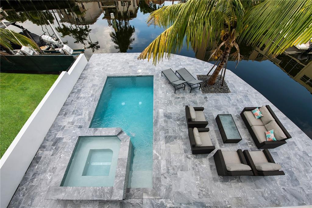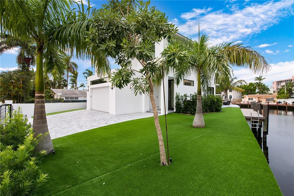 MOST AFFORDABLE NEW CONSTRUCTION SMART HOME IN LAS OLAS! 155 Ft waterfront! Highest seawall & elevation in Las Olas. No fixed bridges. 3bd 3.5 bath appx 3200 SF. Open kitchen w/ premium built-ins & stone throughout. Large master w/ 2 walk-in closets. Master bath w/ large tub and smart toilet. Upstairs laundry w/ quartz tops & abundant storage. Beautiful guest rooms w /walk in closets and ensuite baths. Sonos system through the entire house. Control lights, shades, AC, garage gate + cameras from anywhere! Pool+hot tub w/gas heater.No maintenance turf, marble + artificial wood outside. AC garage, On the concrete 2nd-floor structure, CBS construction, premium insulation+ soundproofing, hurricane Low-E glass. Builder warranty.