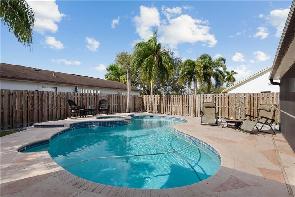 This 3/2 pool home in the desirable Hills of Welleby with over 1800 sq ft of living space is the perfect place to call home. Interior features include updated kitchen with granite counters, wood cabinets, stainless steel appliances, and breakfast bar. Floor plan features a formal dining area & formal living room, plus additional family room. Bathrooms are beautifully updated. The master bedroom has a huge closet! Outdoors features a screened-in lanai that leads to an inviting pool and spa with large deck, a perfect yard for entertaining. The home is located on a large corner lot in a cul-de-sac. OPEN HOUSE ON SUNDAY 1/31 from 11am-2pm. NO SHOWINGS UNTIL OPEN HOUSE.