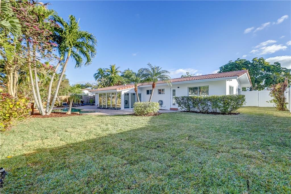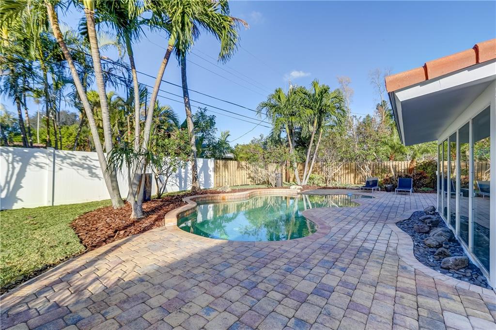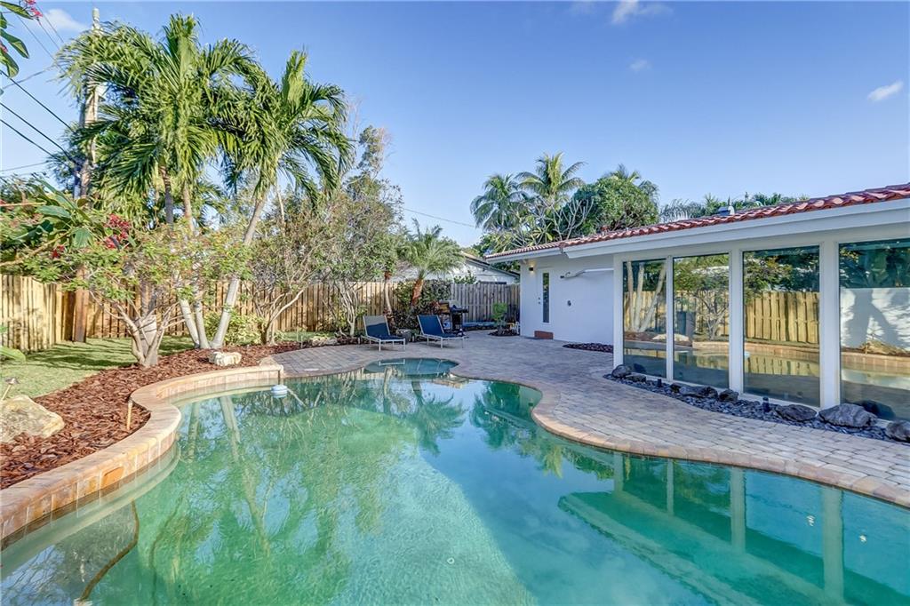 Fantastic 3 bedroom, 2.5 bath pool home in the heart of Coral Ridge! Located on a great interior street, south of NE 26th St. in Old Coral ridge this home is "Turnkey" & a must see. The interior features tile floors throughout the main living areas, open concept great room w/ mid-century modern wood ceiling in dining area overlooking the pool & backyard, updated kitchen with SS appliances, interior laundry room & hurricane impact windows. Exterior of the home has been freshly painted & features brand new landscaping front & back, Concrete S-Tile Roof, 2 car garage, brick driveway, expansive backyard w/ pavered pool deck, resort style pool, newer fence, buried gas tank services full home generator & tankless gas hot water heater. Located in the A+ rated Bayview Elementary School district.