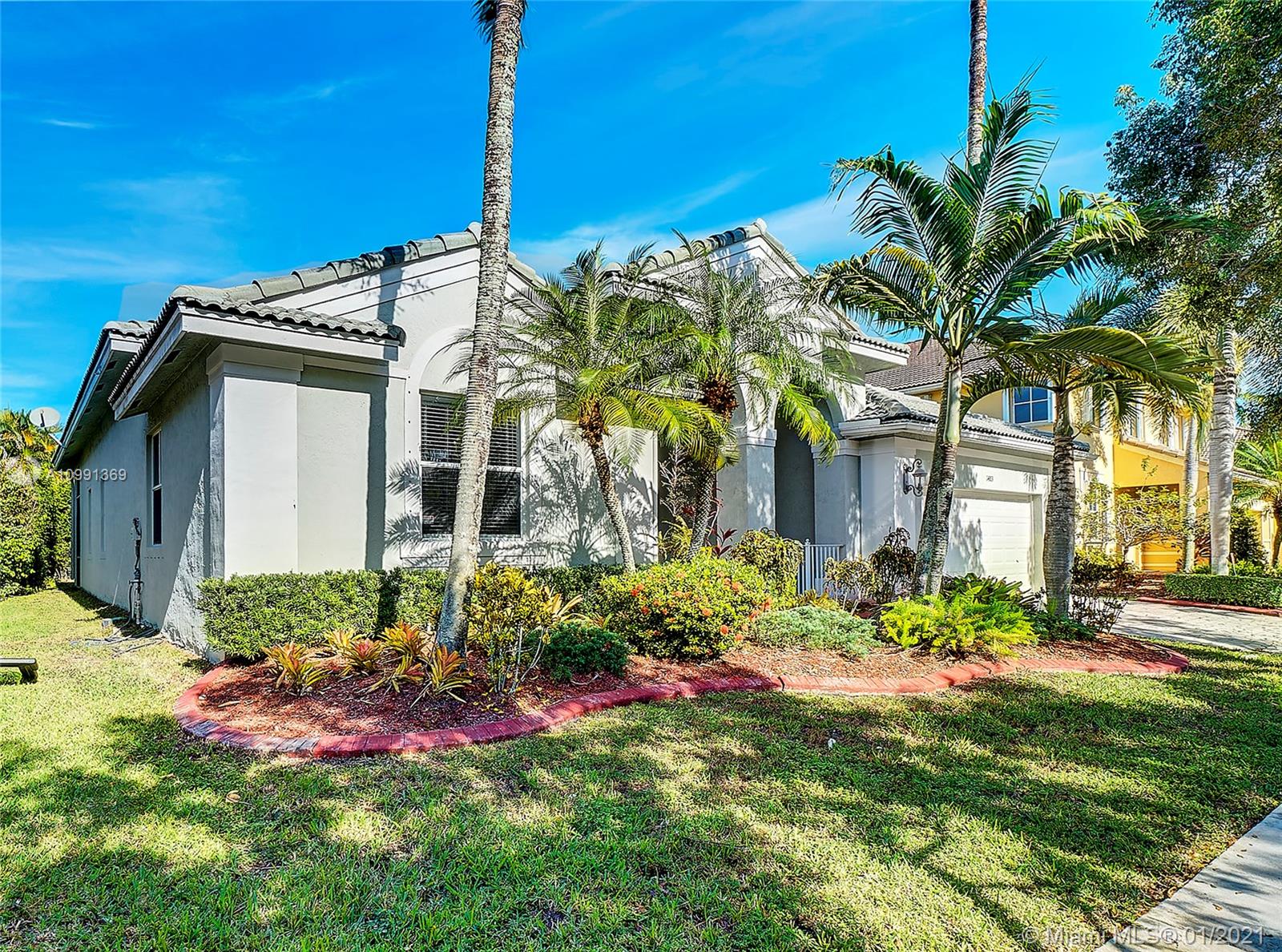 Beautiful Heron model single story, 4 Bedroom, 3.5 Bathroom, Den/Study with 2 Car Garage residence located in the very well sought after gated community of Savanna in the City of Weston. Interior features: travertine marble floors throughout main living area, wood floors in master bedroom & den/study. Kitchen features include: all real maple wood cabinets with glass insert doors, under-mount lighting, black granite counter tops with designer glass backsplash & all stainless steel GE Profile appliances. The French doors located in the living room & family room lead you to your very own private screened in patio. Exterior features: paver driveway, private porch and hurricane shutters throughout. Savanna is an excellent family oriented community with outstanding amenities and schools.