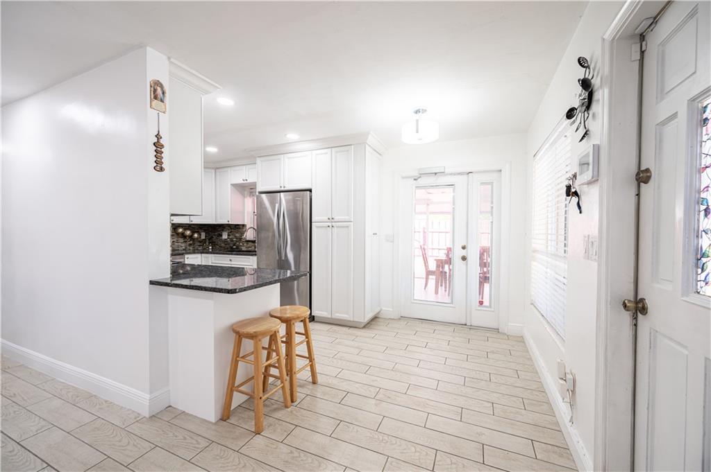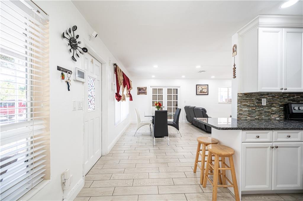 Newly Renovated 2/1 with a den that is used as a 3rd bedroom. Update Kitchen with Stainless Steel Appliances,  Porcelain wood-like floors throughout the house.  Covered porch with outside kitchen, great for entertaining. This home has lots of potential for expansion with oversize lot also 8x8 shed in the backyard. back yard has room for a pool