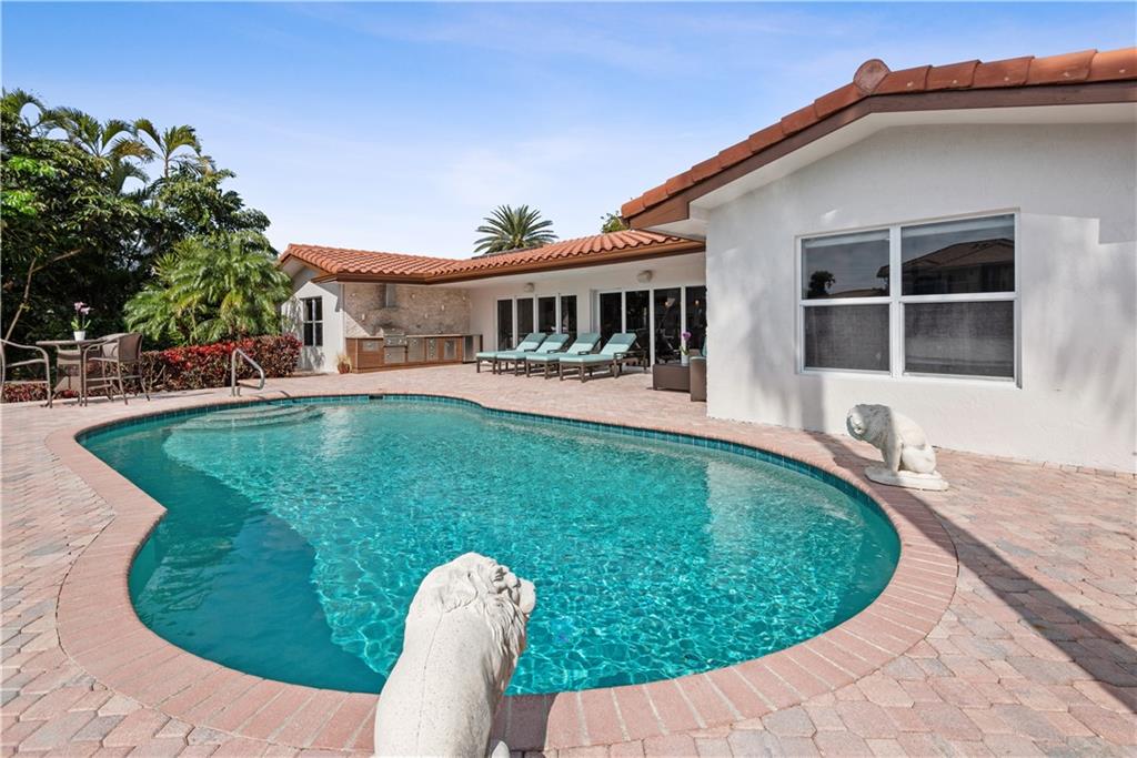 Experience the Location and Luxury of this exquisite waterfront home in the desirable community of Bermuda Riviera. This property w/ 2,254 sq. ft of under air living space has travertine floors throughout, split bedroom configuration, 4 bedrooms, 3 full baths, open floor plan, nicely appointed kitchen with SS appliances to include induction stove, wine cooler, natural stone counter tops, custom cabinetry, and island w/ seating. All impact doors and windows & new whole house generator. With 80’ of deep-water frontage, this property also has an outdoor kitchen, heated/salt-system pool, and boat lift. Two car garage w/Tesla charging outlet. To live in Bermuda Riviera means enjoying easy access to the beach, sun dappled pathways throughout the community and close proximity to dining & shopping