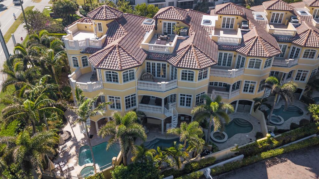 Exclusive & luxurious 4 bedroom, 5.1 bath residence featuring fee-simple lot ownership, private entrances, & private pool and cabana area. The incredible location, gorgeous ocean views, scenic balconies, private deeded beach access, and pristine features & finishes, make it world-class living! This 3993 sq. foot townhome is one of only six and has spectacular direct ocean views from the main living areas & master suite. The home boasts 10 foot ceiling heights, features marble flooring, impact windows and doors, and has a private elevator servicing all 3 floors, and an incredible 4th floor ocean observatory deck and covered wet bar. Watch the ocean waves from the gourmet chef's kitchen featuring Wolf/SubZero Appliances, and double oven.