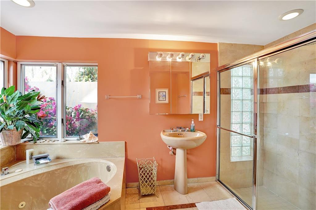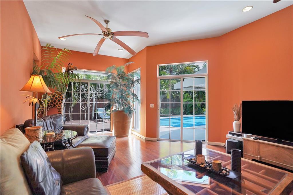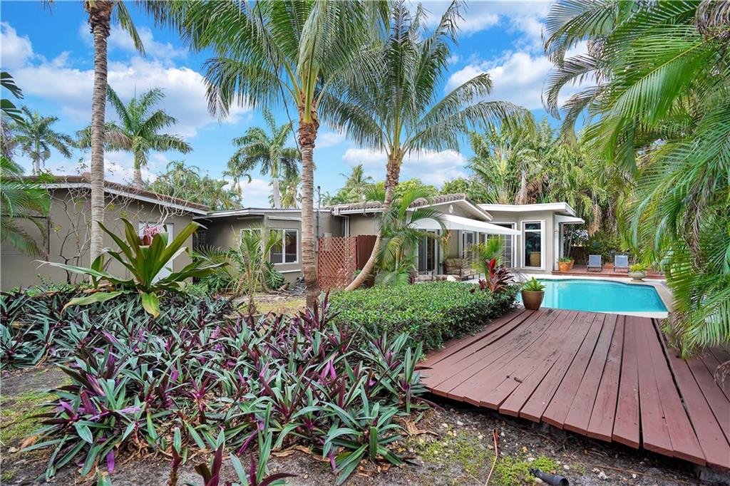 Amazing 3 bed/3 bath home located in the esteemed Coral Ridge neighborhood. Brand new roof just installed!!! This home boasts a huge family room w/ vaulted ceilings + sliders that open to the private, gated, tropical pool area. The kitchen has SS appliances, granite counters, a wall oven + a highly sought after gas range. The living + dining areas are open + spacious with plenty of room for indoor entertaining. The master bedroom + bath look out to the pool. The 2nd master bedroom comes with a private en suite bathroom. Tile + wood floors, plantation shutters, security system, 2 car garage, laundry room, lush landscaped grounds and beautiful pool. Close to shopping, restaurants, the beach + Bayview Elementary school. You don't want to miss this opportunity to own this gorgeous home!