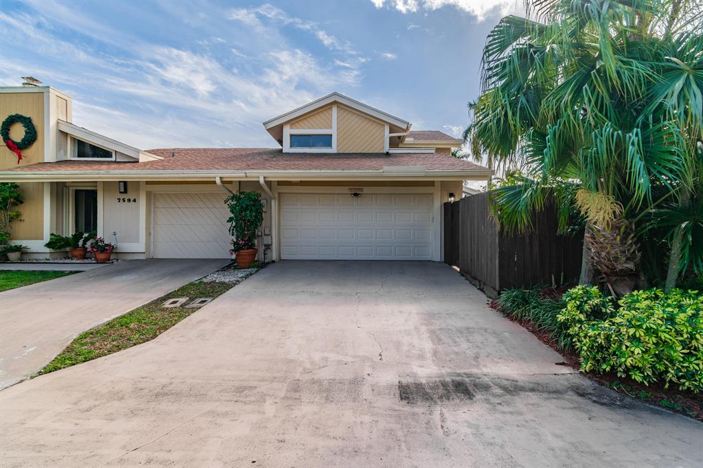 Tranquil Townhome in Boca Raton. Originally built in 1980, this 3BR/2.5BA home has been beautifully maintained and recently updated. Once inside, the interior has vaulted ceilings, an open floorplan, and sparkling natural light. The sizeable living room w/fireplace flows directly into the updated kitchen which has white shaker cabinetry, granite countertops w/matching backsplash, and stainless-steel appliances. Warm weather will beckon you to the fully fenced-in backyard which includes a private swimming pool, terracotta tile patio, gorgeous palm trees, and a covered sitting area. The master bedroom has a sizeable closet and an en suite. Other features: 2-car garage, laundry area, new roof, loft w/wood flooring, short walk to worship, close to shopping, and much more! Call now for a tour!