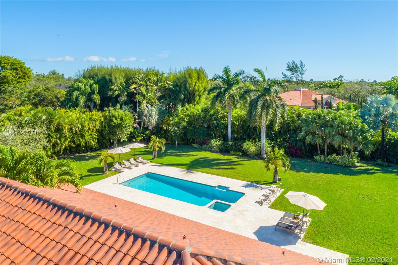 Tucked off historic Old Cutler Road, a tree-lined prestigious street in Coral Gables, a veritable paradise awaits. Here, sunlight dances across each room, lush greenery invigorates, and life unveils its most beautiful moments. Enter your gated drive with interlocking brickwork, yielding a spacious, private acre lot dotted with palms. An expansive foyer welcomes, while beyond, the one-story open plan offers endless room to play. Enjoy walk-through access to your immense backyard and inground pool, where you can cool off and sip champagne poolside. Living spaces reveal richly veined marble flooring in eye-catching contrast to bedrooms lined in lustrous dark hardwood. Decorative molding elevates crisp white walls, and drop lighting becomes a work of art in iridescent tones. Welcome home.