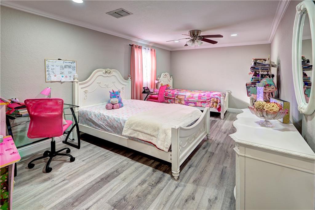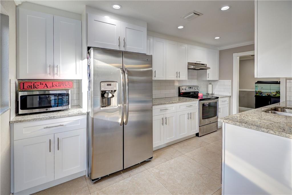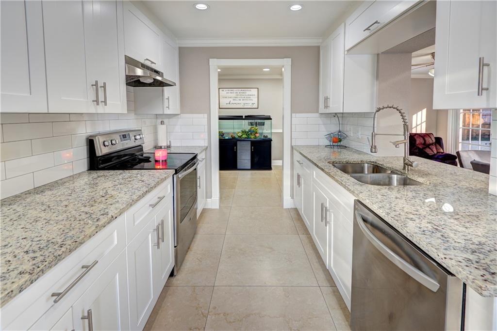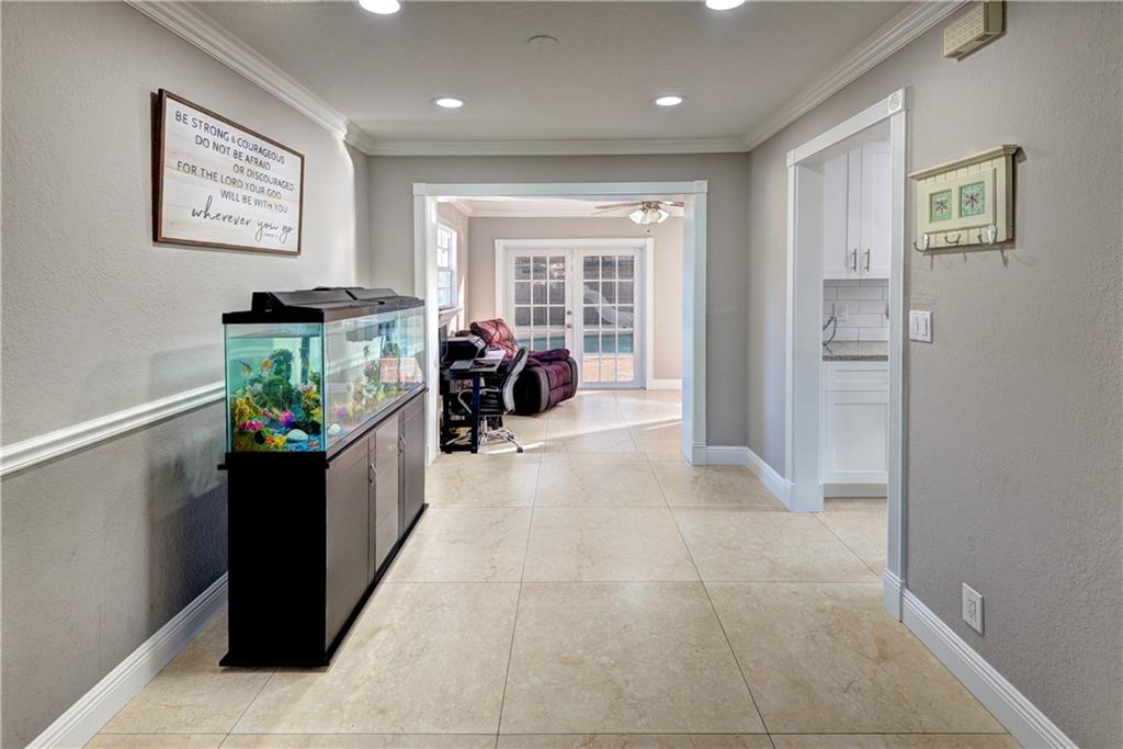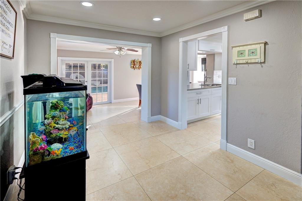 Welcome to this extensive and beautifully upgraded 3 bedroom move in ready pool home. Upon entering you will immediately notice the amazing 30x30 tile carried throughout, the gorgeous crown molding in the ceiling and even around the doorways, brand new and spacious kitchen, two french doors allowing easy access to an enormous private backyard. The garage was converted to a third bedroom with full insulation. Both bathrooms are also new!