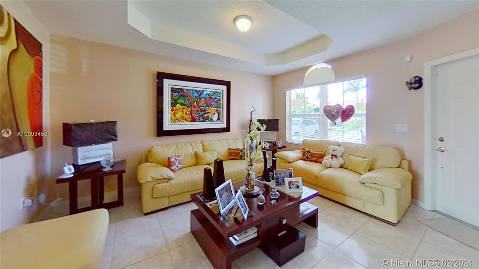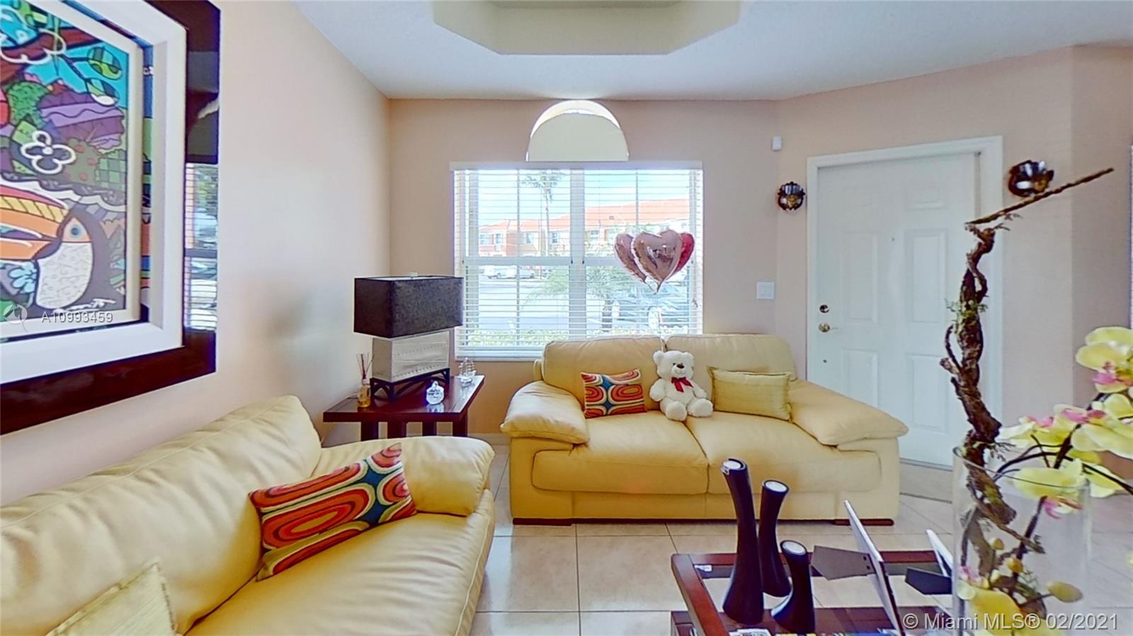 GEORGEOUS TWO STORY TOWNHOUSE IN THE GATE AT DORAL, THIS UNIT CORNER FEAUTURES AN OPEN AND LIGHT FILLED FLOOR PLAN WITH A GREAT LIVING AREA, DINING, 3 BEDROOMS, 2.5 BATHS, OPEN KITCHEN WITH WHITE WOOD CABINETRY AND ELEGANT BLACK GRANITE COUNTERTOP, THE HOME HAS CERAMIC ON FIRST FLOOR, ON SECOND FLOOR AND STAIR HAS CARPET COLOR CHAMPAGNE. ENJOY A BEAUTIFUL LAKEFRONT VIEW FROM YOUR PRIVATE PATIO. THE AC WAS REPLACED IN 2018, IMPACT PATIO DOORS, SECURITY CAMERA SYSTEAM. MANY GUEST PARKING IN FRONT OF THE PROPERTY. THE PROPERTY IS IN AMAZING CONDITIONS, GREAT SCHOOLS DISTRICT LOCATION. " ALL FURNITURE IS FOR SALE SEPARATELY FROM THE PROPERTY."