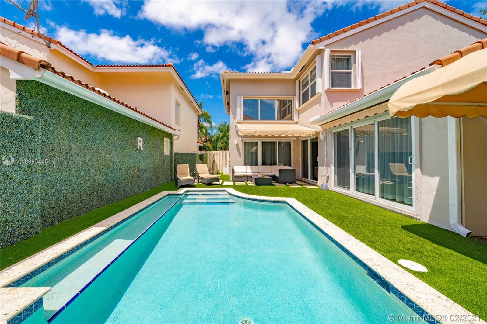 ONE OF A KIND, COMPLETELY REMODELED, DESIGNER DECORATED 4/3 WITH HIGH CEILINGS, 2 CAR GARAGE AND A SWIMMING POOL. THIS HOUSE IS ABSOULUTELY STUNNING! UPGRADES INCLUDE TOP OF THE LINE APPLIANCES AND HIGH QUALITY FINISHES INCLUDING CUSTOM DOORS AND FRAMES. OPEN KITCHEN FEATURING BEAUTIFUL HIGH GRADE QUARTZ COUNTERTOPS AND BACKSPLASH, "WATERFALL" COOKING ISLAND, CUSTOM MADE WOOD CABINETRY WITH TOP OF THE LINE S/S APPLIANCES. ONE OF THE BEDROOMS AND A BATHROOM ARE LOCATED ON THE GROUND LEVEL. FAMILY ROOM OPENS UP TO A PATIO WITH SWIMMING POOL AND SUNBATHING AREA. THE HOUSE FEAQTURES HIGH IMPACT WINDOWS THROUGHOUT. PROPERTY IS LOCATED ON THE QUIET STREET IN A 24/7 GATED COMMUNITY, ONLY 1 MILE AWAY FROM THE BEACH. AMENITIES INCLUDE: TENNIS, SWIMMING POOL, FITNESS CENTER, COMMUNITY ROOM AND MORE.