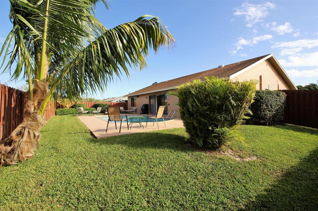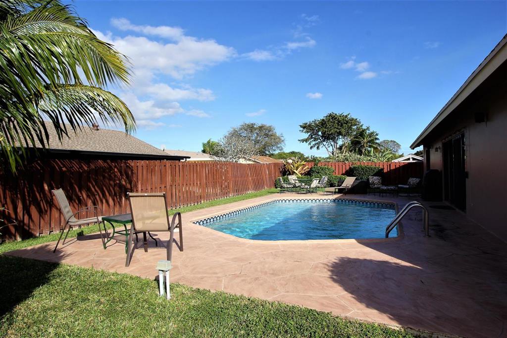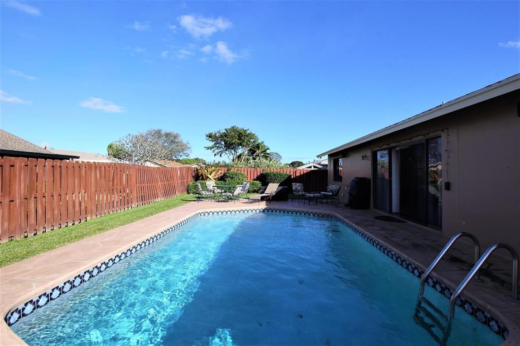 Airy and sunlit 4 bedroom/2 bathroom pool home on a large corner lot in a greatly sought-after Boca Raton community with top rated schools. Home features a gorgeous, professionally maintained pool and fenced yard, 2 car-garage, high impact-hurricane windows and sliding doors. The Kitchen is fully equipped and upgraded with granite counter tops, recently installed dishwasher, stove and microwave. The master bathroom is completely upgraded in marble with a beautiful glass enclosed shower, wood cabinets and granite counter tops. The home is fully furnished and tastefully decorated , includes a 65'' HD Smart TV, Wi-fi, land-line and cable access. (home is turn-key with linens, kitchen utensils-move in ready)