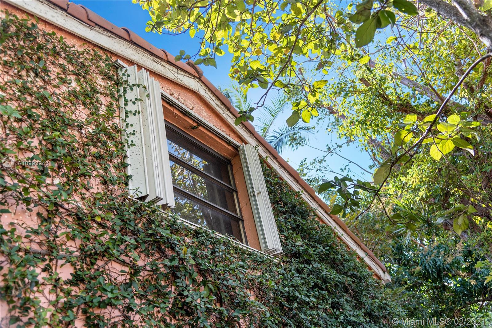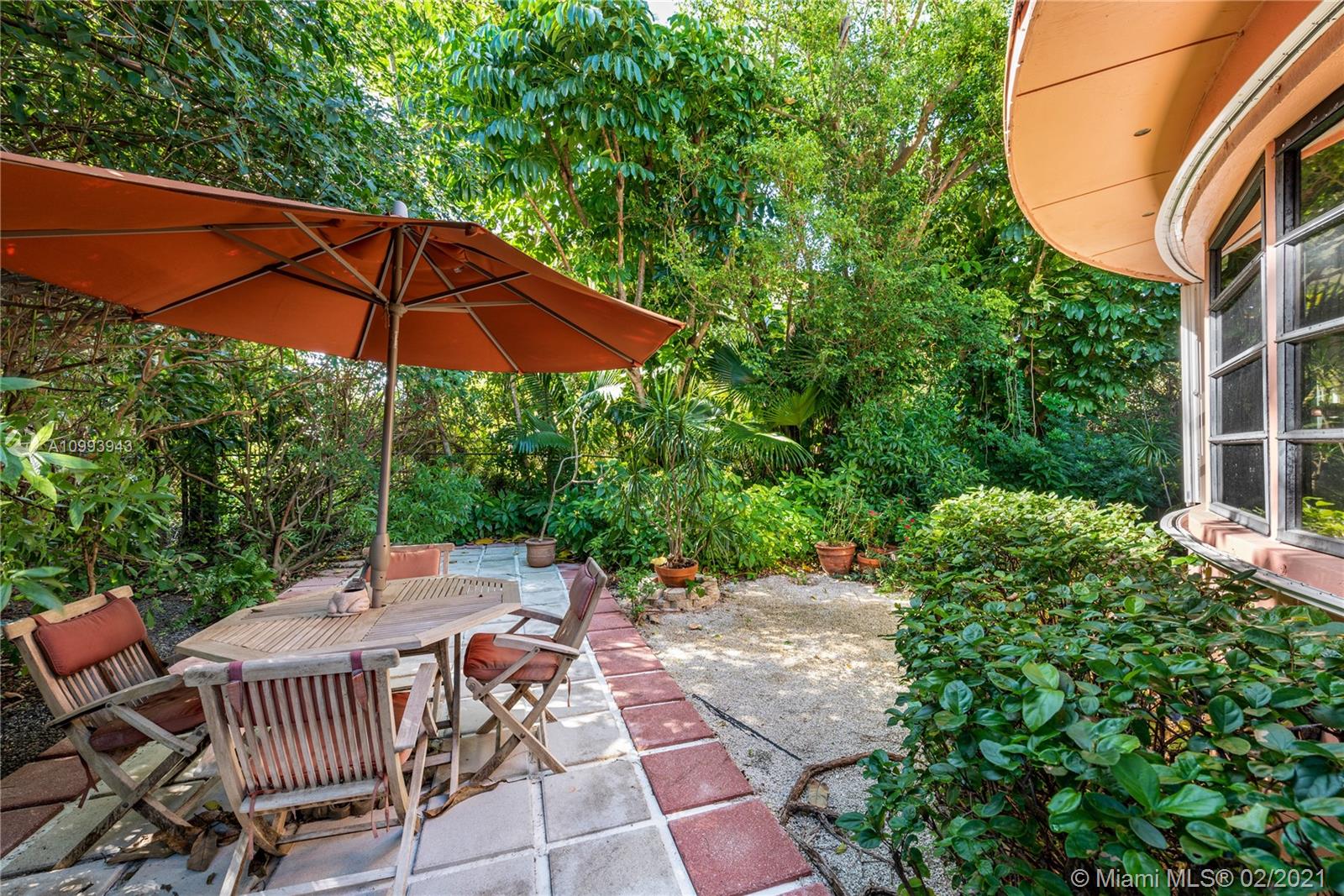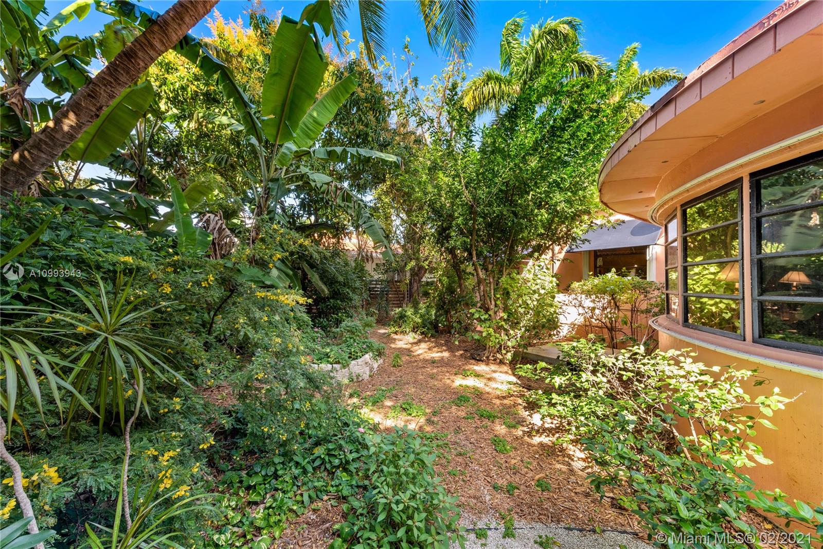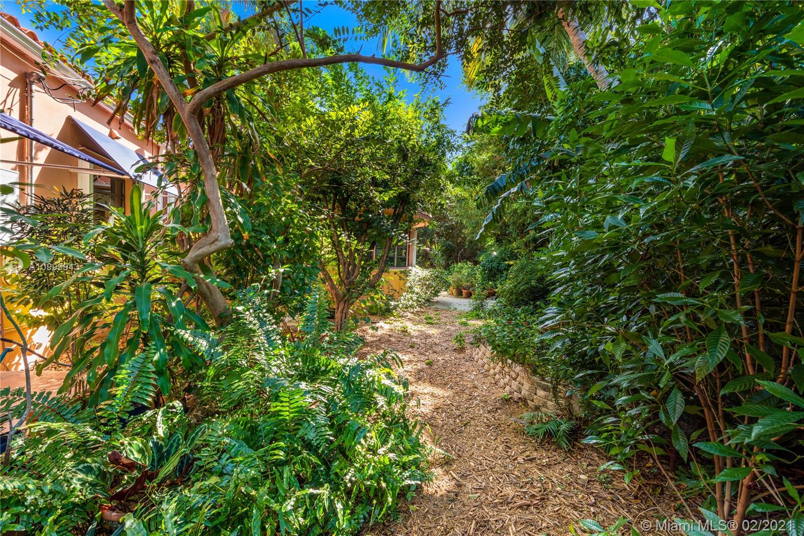 Nestled into an "enchanted garden", this spacious home offers a tranquil retreat from the hustle of the city. This home features Brazilian cherry hardwood floors, a spectacular statement fireplace, remodeled marble bathrooms with a jacuzzi tub and multi-jet showers, closets with built-in custom cabinetry, and a remodeled kitchen with high-end appliances including a Viking gas range and professional hood. The home is very well maintained with new copper plumbing (2002), a new roof (2003), full accordion shutters (2004), a newer 4 ton AC unit, tankless water heater, etc. The landscaping is a low maintenance organic butterfly garden with mature fruit trees including Mango, Banana, Papaya, Cherry, Guava, and Jackfruit. There is also room for a pool if the buyer prefers. Will go fast!