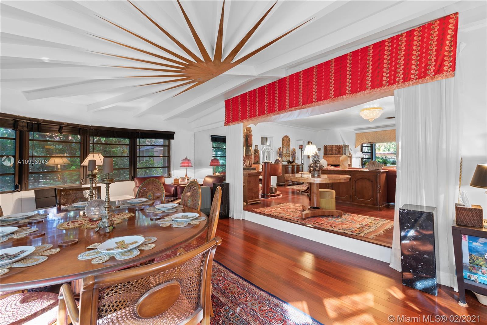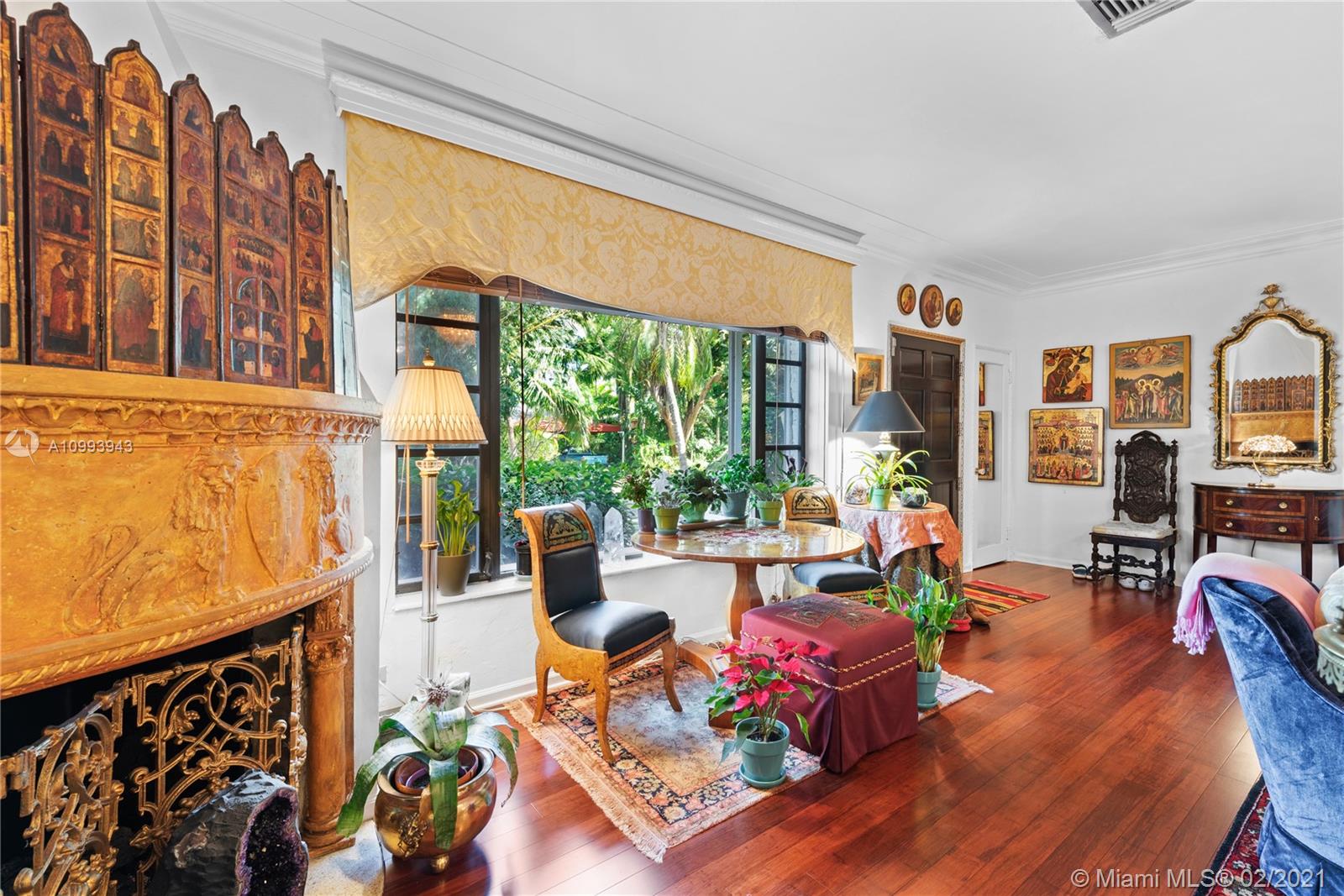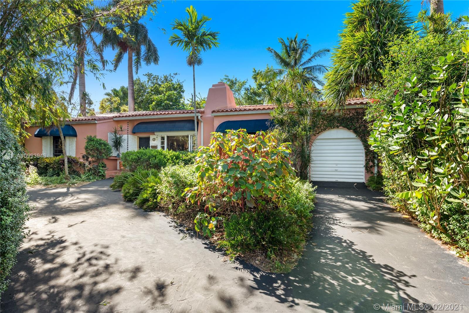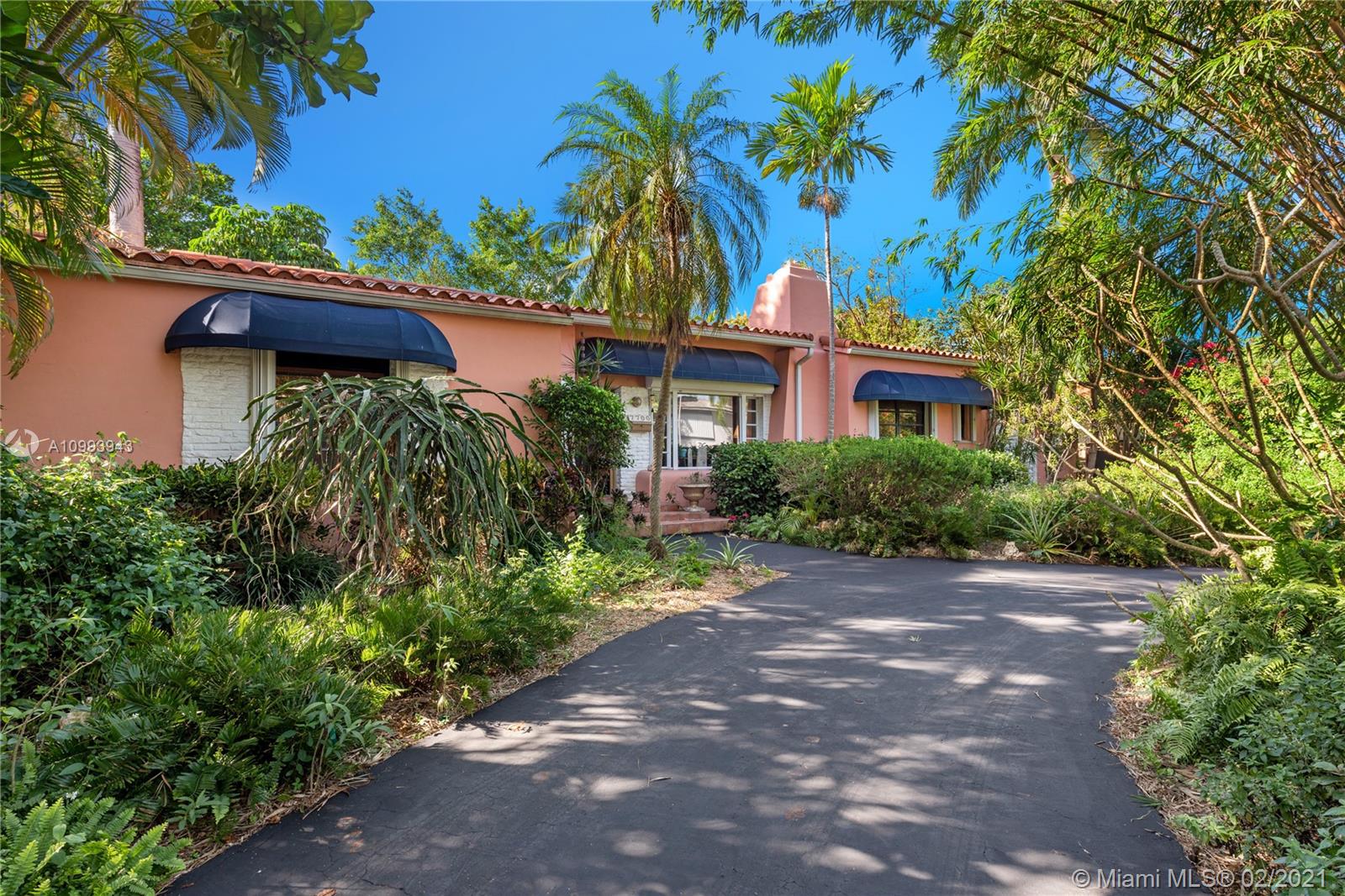 Nestled into an "enchanted garden", this spacious home offers a tranquil retreat from the hustle of the city. This home features Brazilian cherry hardwood floors, a spectacular statement fireplace, remodeled marble bathrooms with a jacuzzi tub and multi-jet showers, closets with built-in custom cabinetry, and a remodeled kitchen with high-end appliances including a Viking gas range and professional hood. The home is very well maintained with new copper plumbing (2002), a new roof (2003), full accordion shutters (2004), a newer 4 ton AC unit, tankless water heater, etc. The landscaping is a low maintenance organic butterfly garden with mature fruit trees including Mango, Banana, Papaya, Cherry, Guava, and Jackfruit. There is also room for a pool if the buyer prefers. Will go fast!