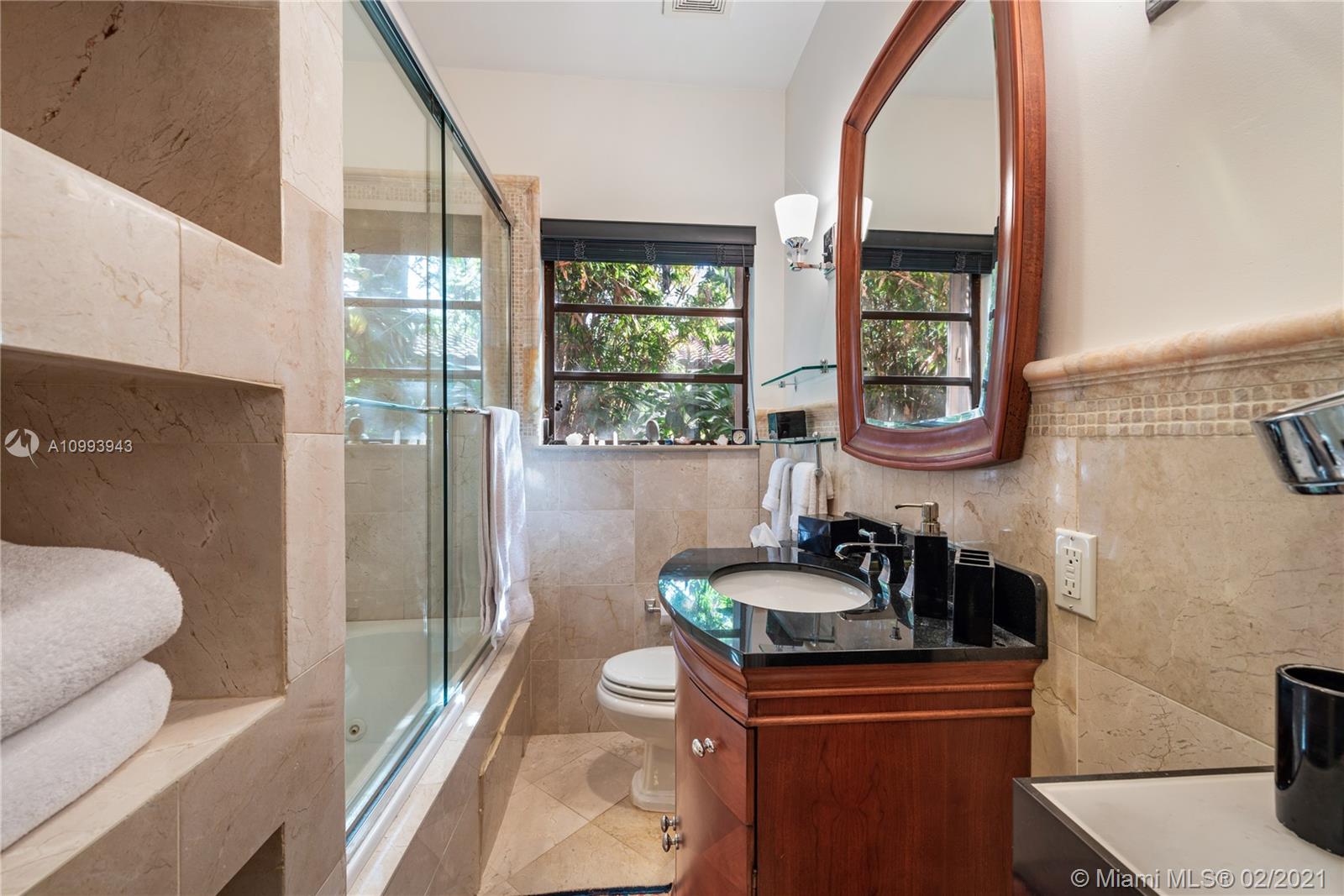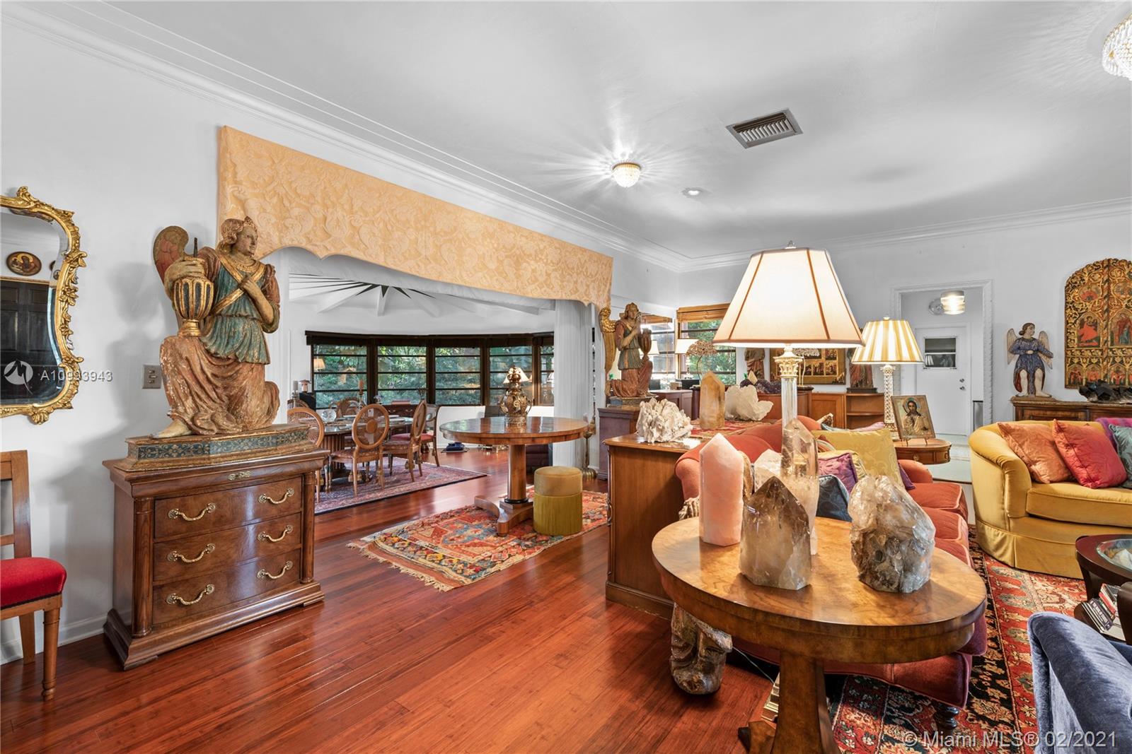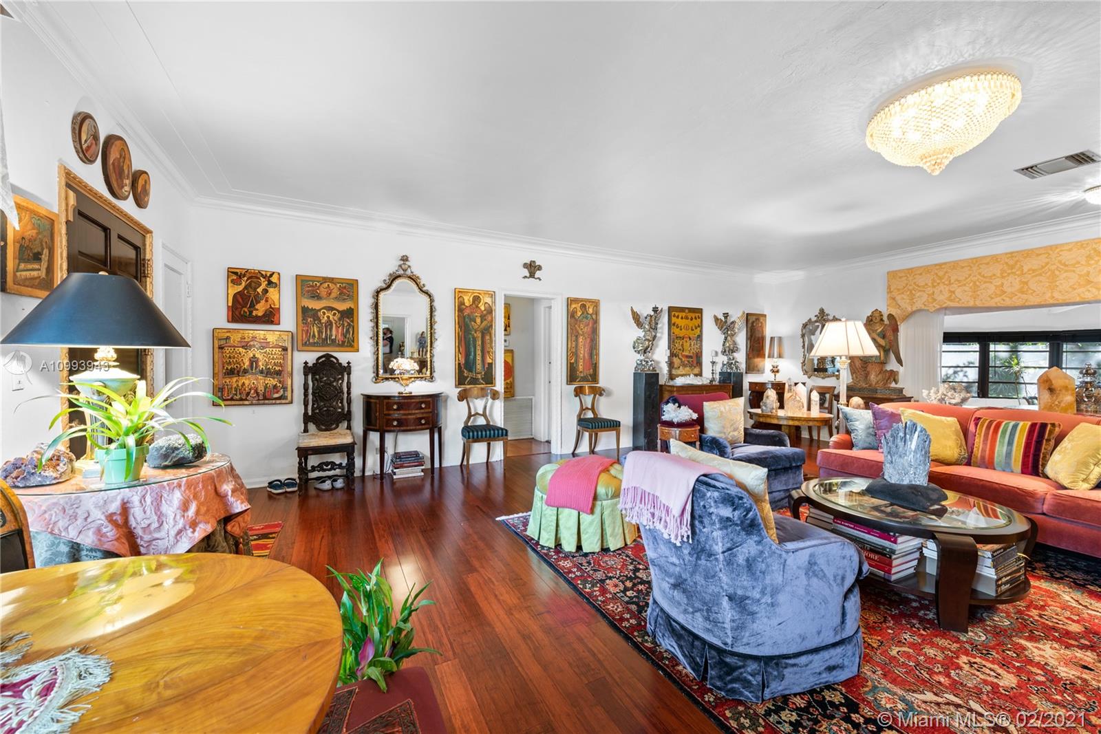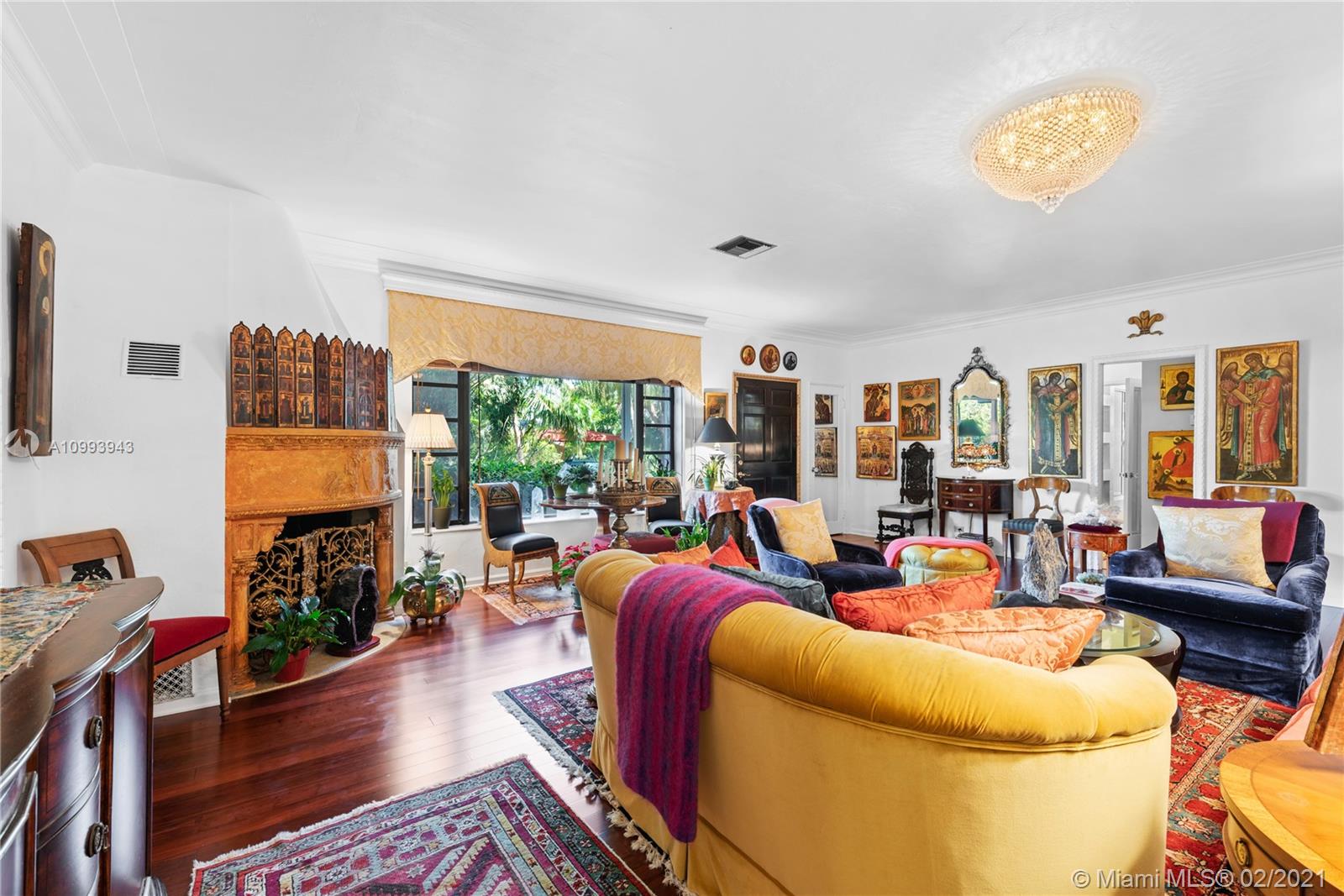 Nestled into an "enchanted garden", this spacious home offers a tranquil retreat from the hustle of the city. This home features Brazilian cherry hardwood floors, a spectacular statement fireplace, remodeled marble bathrooms with a jacuzzi tub and multi-jet showers, closets with built-in custom cabinetry, and a remodeled kitchen with high-end appliances including a Viking gas range and professional hood. The home is very well maintained with new copper plumbing (2002), a new roof (2003), full accordion shutters (2004), a newer 4 ton AC unit, tankless water heater, etc. The landscaping is a low maintenance organic butterfly garden with mature fruit trees including Mango, Banana, Papaya, Cherry, Guava, and Jackfruit. There is also room for a pool if the buyer prefers. Will go fast!