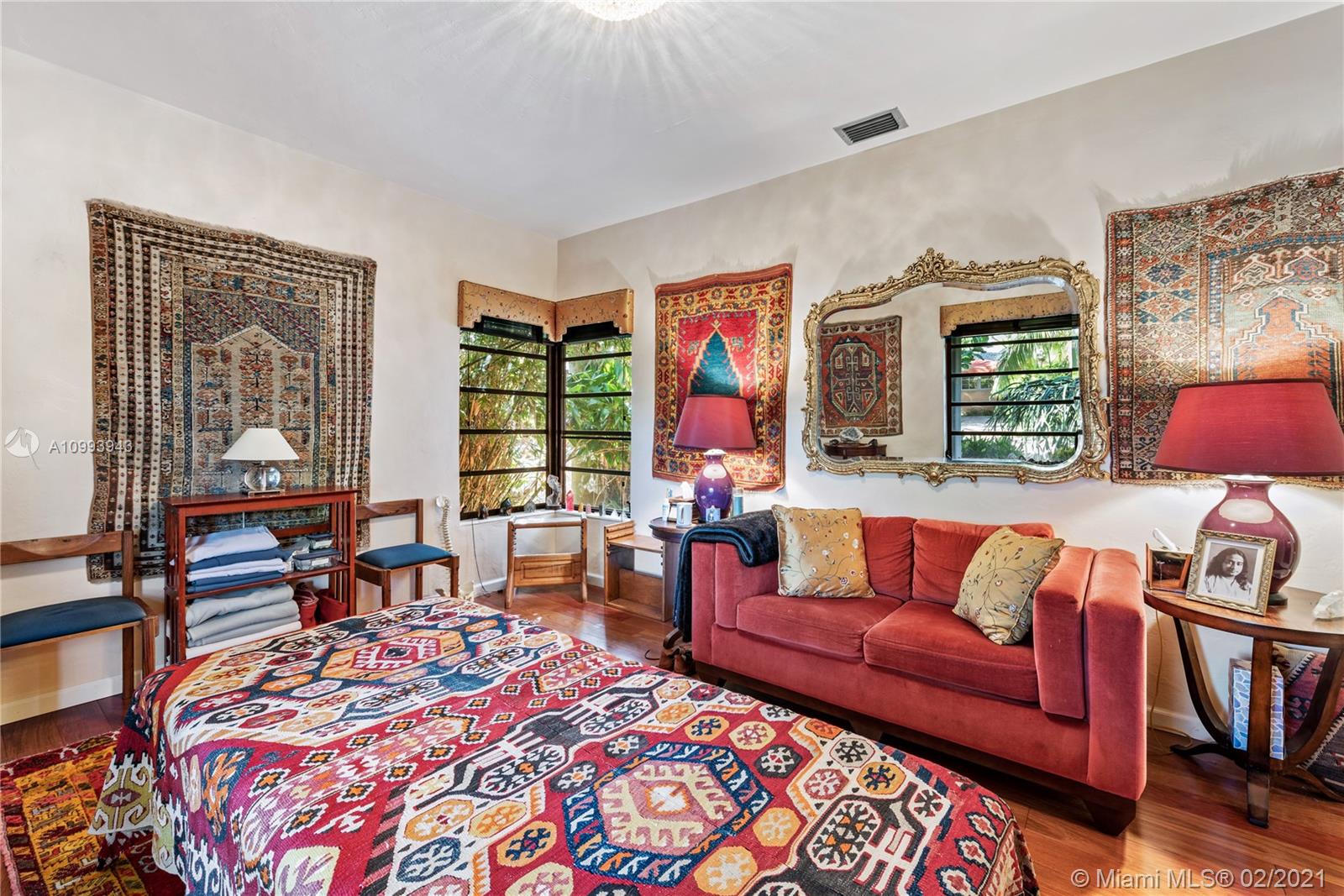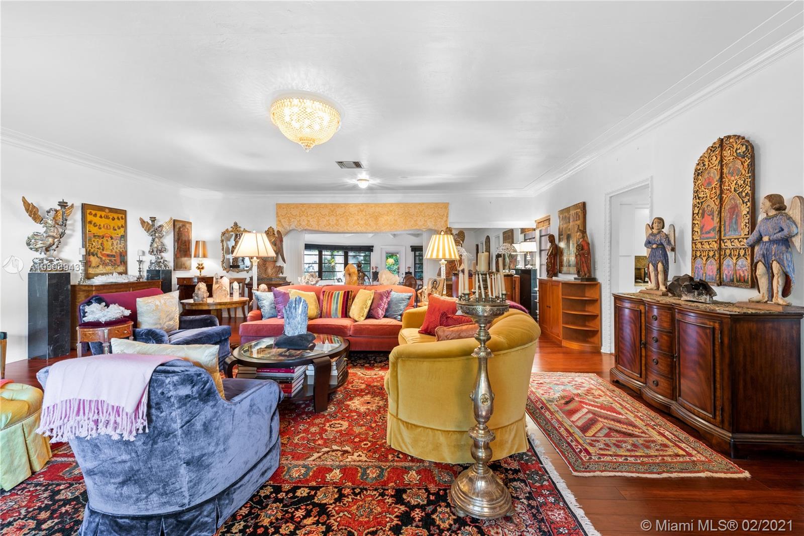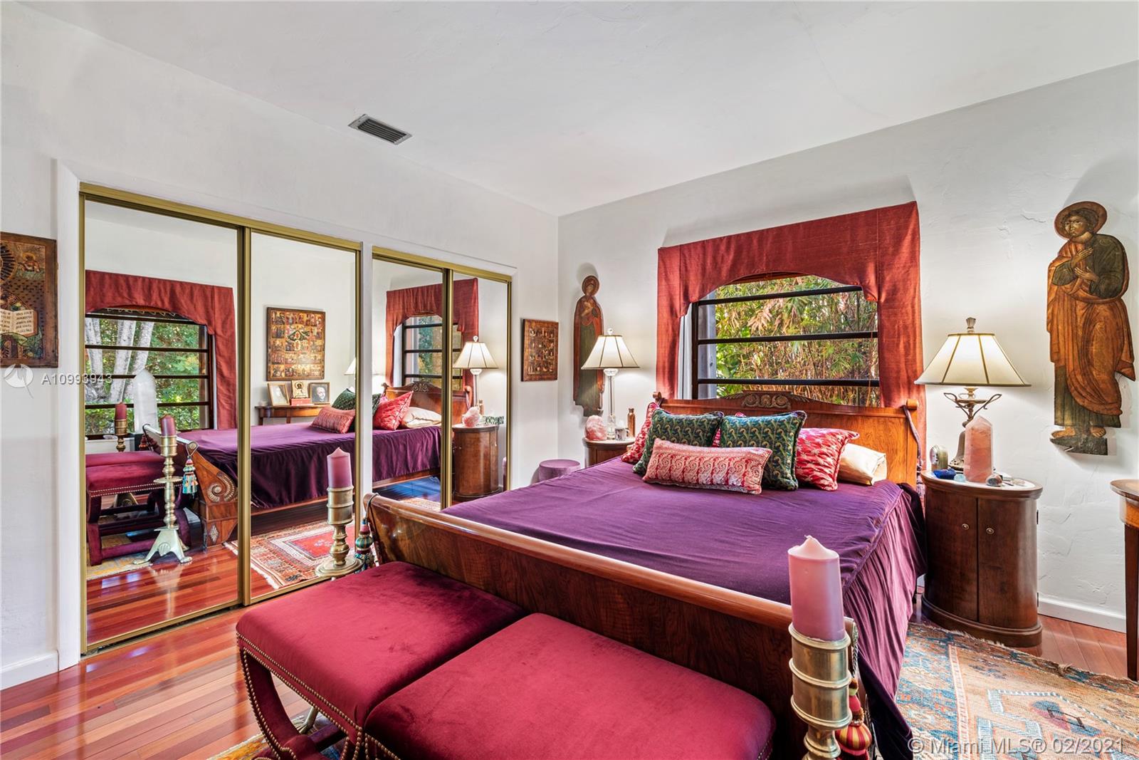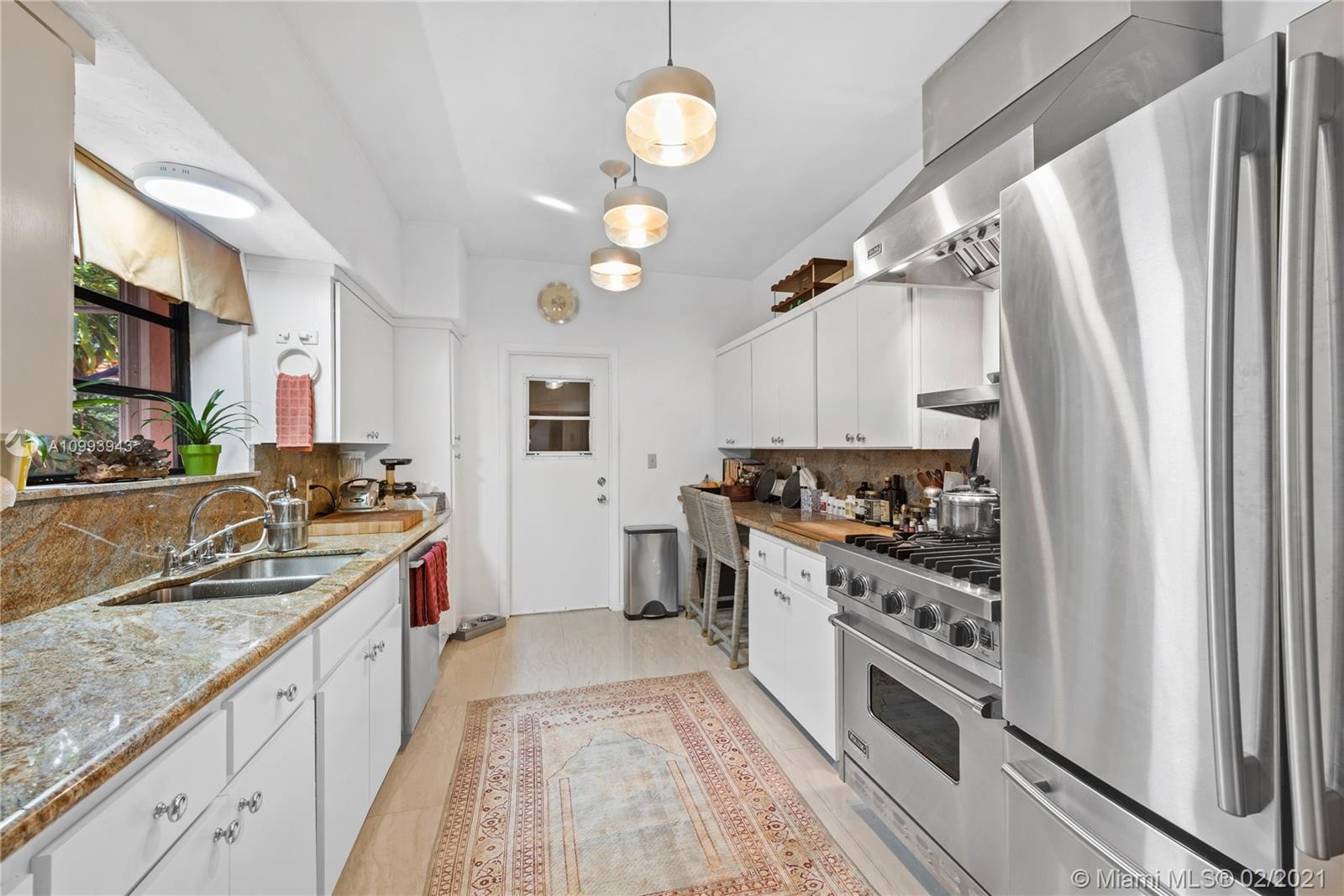 Nestled into an "enchanted garden", this spacious home offers a tranquil retreat from the hustle of the city. This home features Brazilian cherry hardwood floors, a spectacular statement fireplace, remodeled marble bathrooms with a jacuzzi tub and multi-jet showers, closets with built-in custom cabinetry, and a remodeled kitchen with high-end appliances including a Viking gas range and professional hood. The home is very well maintained with new copper plumbing (2002), a new roof (2003), full accordion shutters (2004), a newer 4 ton AC unit, tankless water heater, etc. The landscaping is a low maintenance organic butterfly garden with mature fruit trees including Mango, Banana, Papaya, Cherry, Guava, and Jackfruit. There is also room for a pool if the buyer prefers. Will go fast!