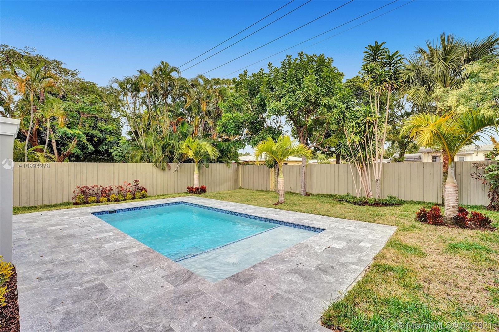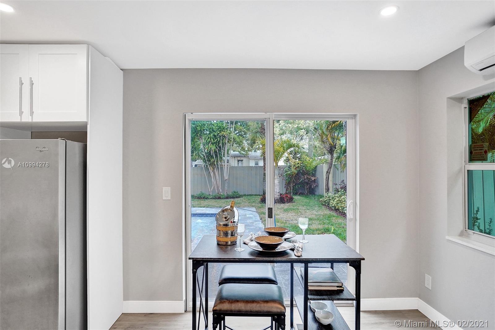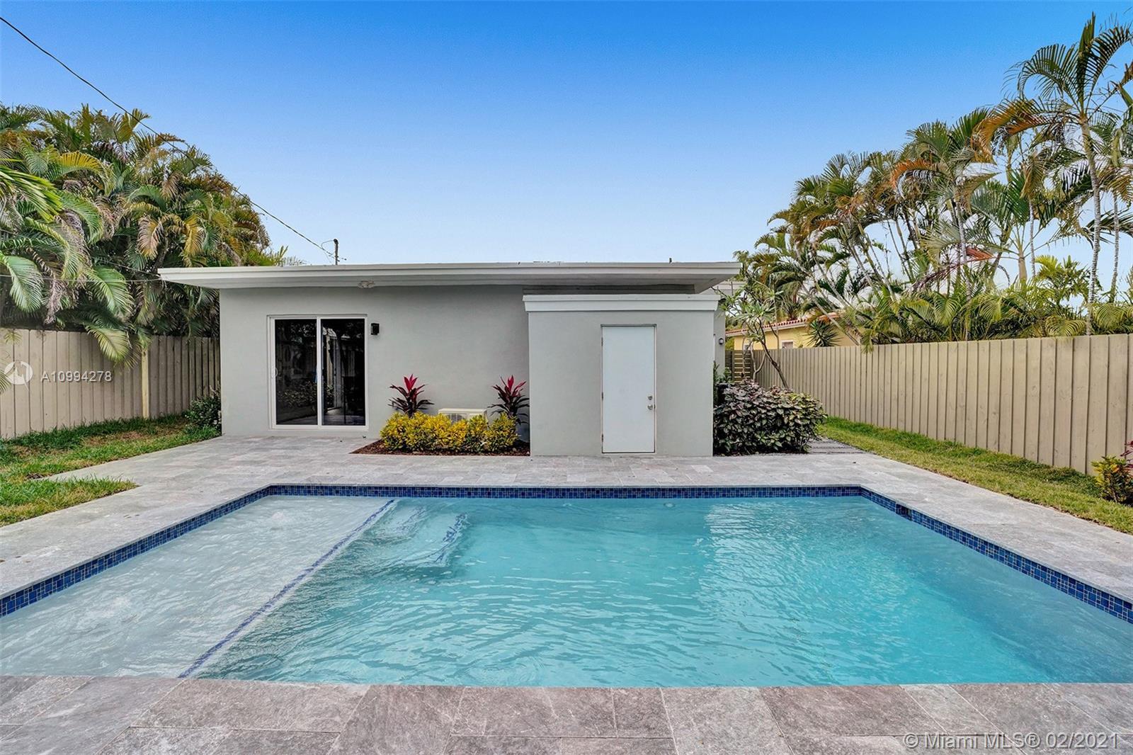 "Mid-Century Modern Duplex" consisting of a 2/2 & 1/1 has been re-designed & re-inspired to the present, by “Griffin Designs of Ft. Laud”. Enter the 2/2 with a New Custom Kitchen w/Quartz countertops. Top of the line S/S Appliances & a Skylight that radiates natural sunlight into the home. New fireplace in the living room. New Master Suite w/ 14 foot hi volume ceilings, Dual custom vanities, & an oversized shower plus 2 closet. Your master suite invites you to a private tropically landscaped backyard & newly fenced Plus a New resort styled pool.The1/1 is just as fabulous as the 2/2! Great investment for Air B & B," snowbird retreat" Professionally Staged By: Florida Stage Hands & Design's Of Wilton Manors.