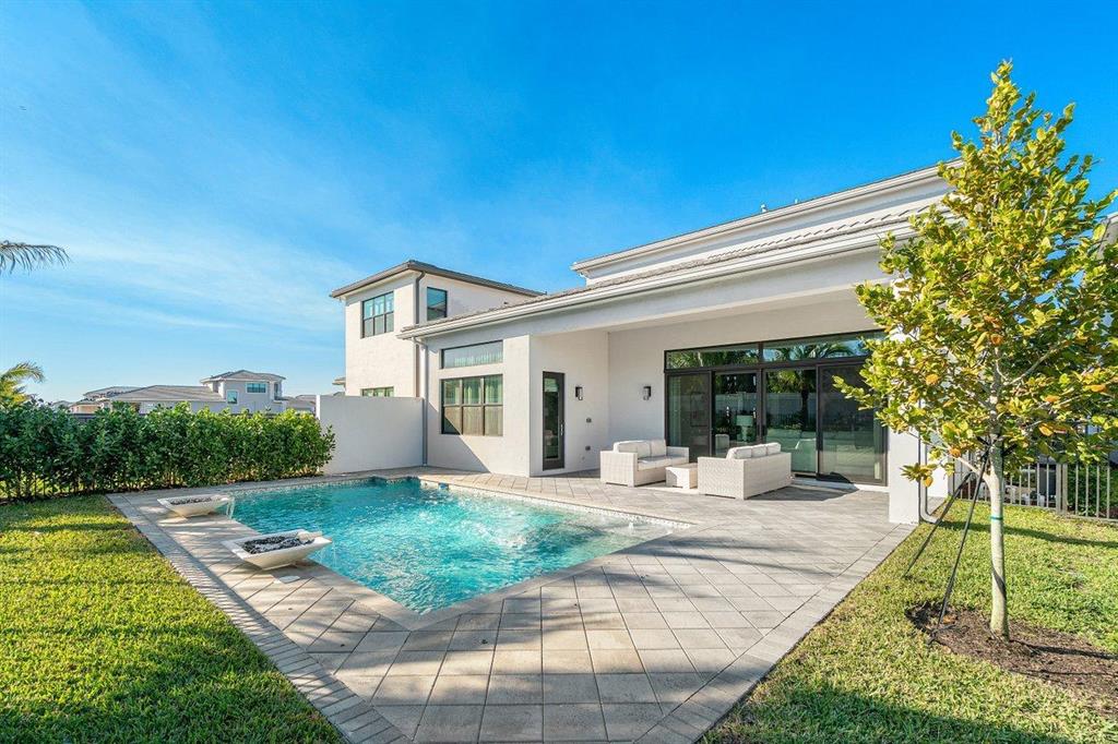 READY FOR IMMEDIATE MOVE IN WITH DESIGNER FURNISHINGS IN BOCA BRIDGES. Contemporary Adriana with modern finishes, designer accents, POOL and SOUTH-facing backyard! This exquisite home features an open floorplan, gourmet kitchen with huge center island, first floor master suite, 3-car garage and beautiful custom window treatments and designer fixtures. Enjoy all Boca Bridges has to offer with a 27,000 sqft clubhouse complex that includes a restaurant with full service pool bar, game room, fitness center, tennis courts, pickleball, main pool, kids splash park and more!