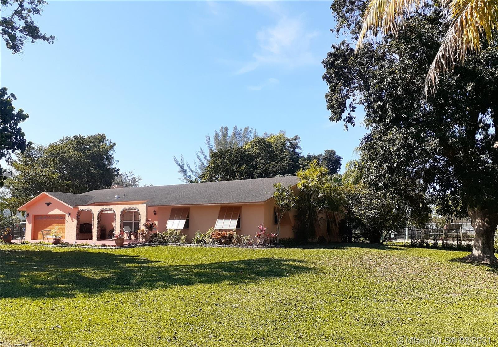 THIS GREAT EQUESTRIAN POOL HOME FEATURES 3 BEDROOMS, 2 BATHS, LARGE LIVING ROOM, FAMILY ROOM WITH FIREPLACE, DINING ROOM AND A SPACIOUS EAT IN BREAKFAST AREA, NEW FULLY FENCED BACK YARD WITH 20X20 GATE FOR ACCESS, HURRICANE IMPACT WINDOWS, NEW 90 FT. WELL, WATER HEATER 1YR, ROOF LESS THAN 5 YRS, 7 STALLS AND STORAGE SHED. POOL HAS CHILD SAFTY FENCE NOT SHOWN IN PICTURES. MUST SEE!