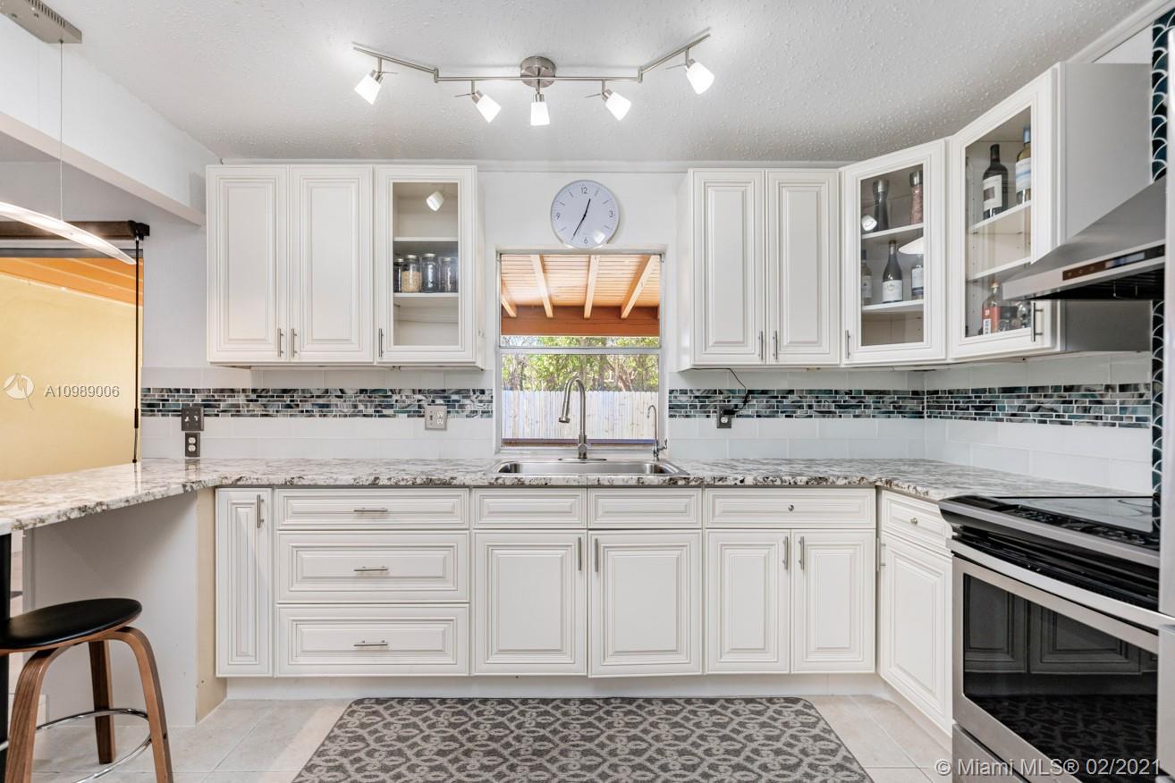 A gorgeous updated 3 bdrm 2 bath, located in a quiet and friendly neighborhood in Palm-Aire Village (Ft Laud) with a bright Living area, Beige ceramic Floor throughout, modern Kitchen with Azul Scallop Tile glossy fish scale mosaic, white solid Cabinets and Granite Countertop, Breakfast Bar for two, plus new S.S Appliances - sliding glass Door to access a huge Screened Patio to enjoy with the family and for gardeners there is a Greenhouse. New AC with a 10-year warranty, Google Nest thermostat, exhaust Fan providing energy efficiency, and Solar Water Heater, a nice PVC/wood Fence around a big Yard that has room for a pool, an updated concrete Driveway, oversized garage, space to park truck/boat and accordion Shutters around the house. Easy access to Expressway and Shopping. You must see!!
