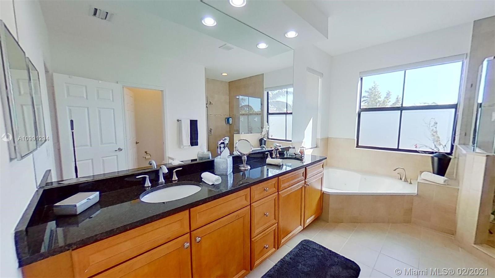 Gorgeous 4 bed/3 bath very desired LARGE POOL home located at the Grand Bay Estates at Doral. Featuring 1 bedroom and full bathroom downstairs. You will find a beautiful kitchen with many upgrades like granite countertops, stainless steel appliances including 2 built-in ovens a wine cooler, and a modern cooktop. Enjoy your own private pool in this beautiful backyard which is perfect for entertaining friends and family. This is a family-friendly gated community that also has a state-of-the-art enormous Clubhouse that offers plenty of amenities for the entire family to enjoy, including an additional pool, sports courts, a waterpark for the children, and a gym. Doral offers A+ schools***Please click on **VIRTUAL TOUR**