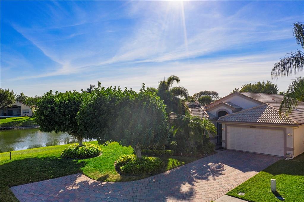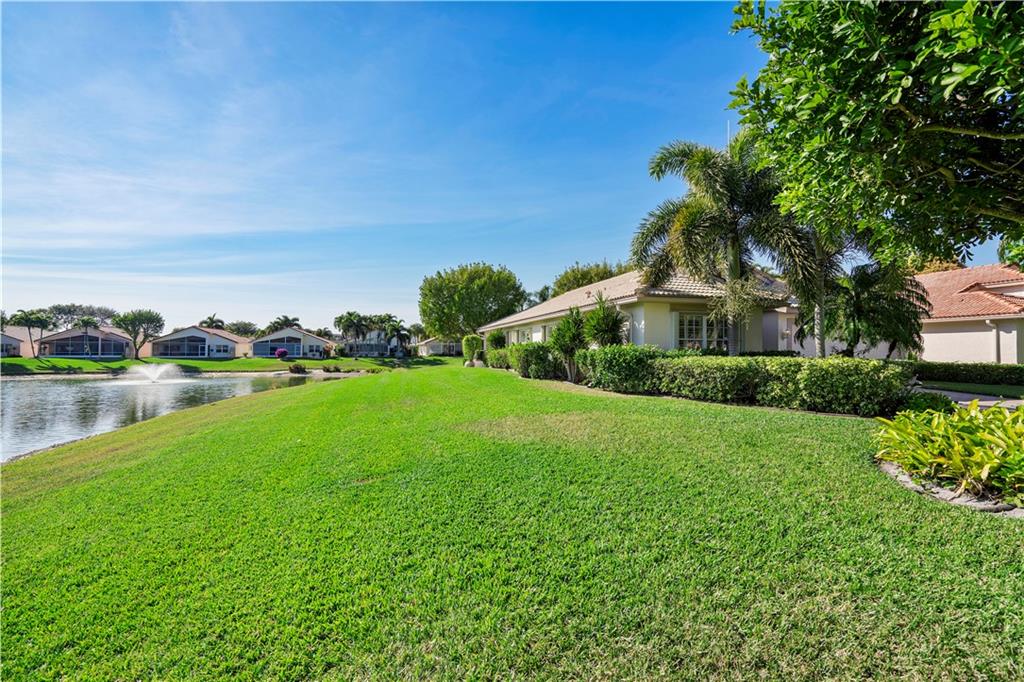 Stunning waterfront views from this unique home located on a private end lot in the gated community of Crescent Lakes in Boca Raton. Light, bright, open floor plan, freshly painted, split bedrooms, Plantation shutters & enclosed Florida room/patio w/ windows that open to enjoy the fresh breeze off the water. Kitchen features granite, stainless steel appliances & large snack bar. Vaulted ceilings with knockdown, accordion hurricane shutters, tile & new laminate floors, inside laundry room, wired for security system & generator switch. Master suite with dual sinks, roman tub, seamless glass shower & his/her walk-in closets. HOA inc. pool, lawn, irrigation, cable w/ HBO, gated entry, gym & tennis. A Schools & great location.