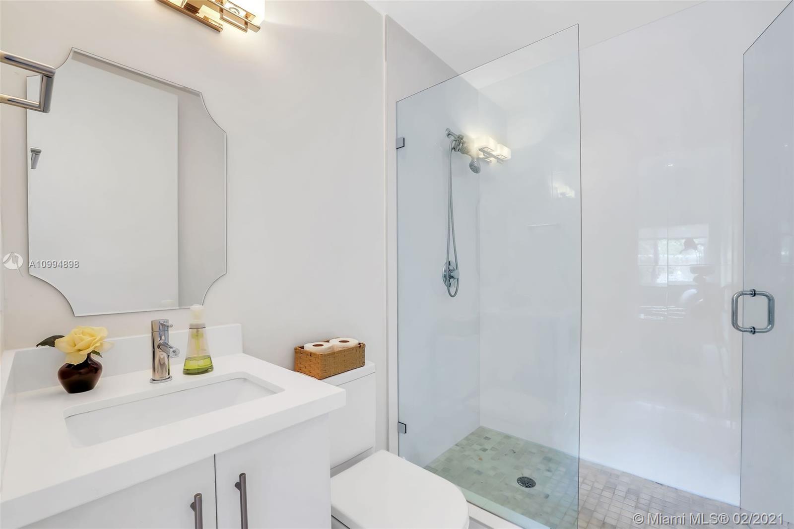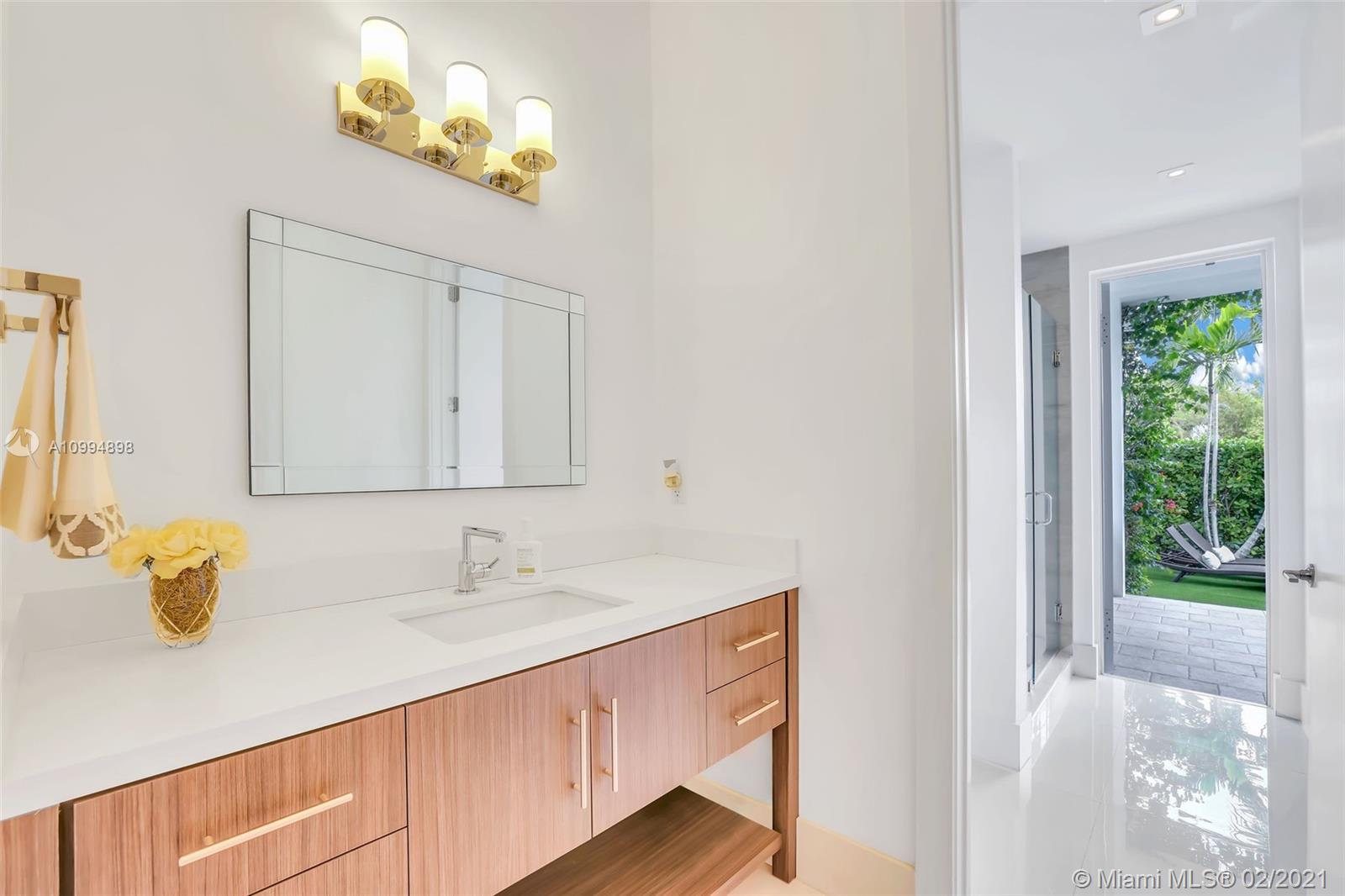 Exquisite waterfront home in tropical, lush & gated Keystone Point. 82’ on the water w/ 46' dock & boat lift, picturesque wide canal views & abundant privacy . Euro kitchen w/white quartz counters & Viking- Wolf appliances. Dramatic open living & dining area w/ double high ceilings, 1000 sf outdoor patio w/summer kitchen & extended living/dining area so you can relax w/cocktails while taking in the magnificent water view. Hardwood floors, large bedrooms, built-out closets & spa-like bathrooms. 5th bedroom is set up as a den and the master bedroom has a magnificent covered terrace to enjoy the sunrise and ocean breezes. Optimal location, great school district. Easy drive to beaches, Bal Harbour shops, Whole Foods, Publix & much more. A home with a Caribbean Resort feel.
