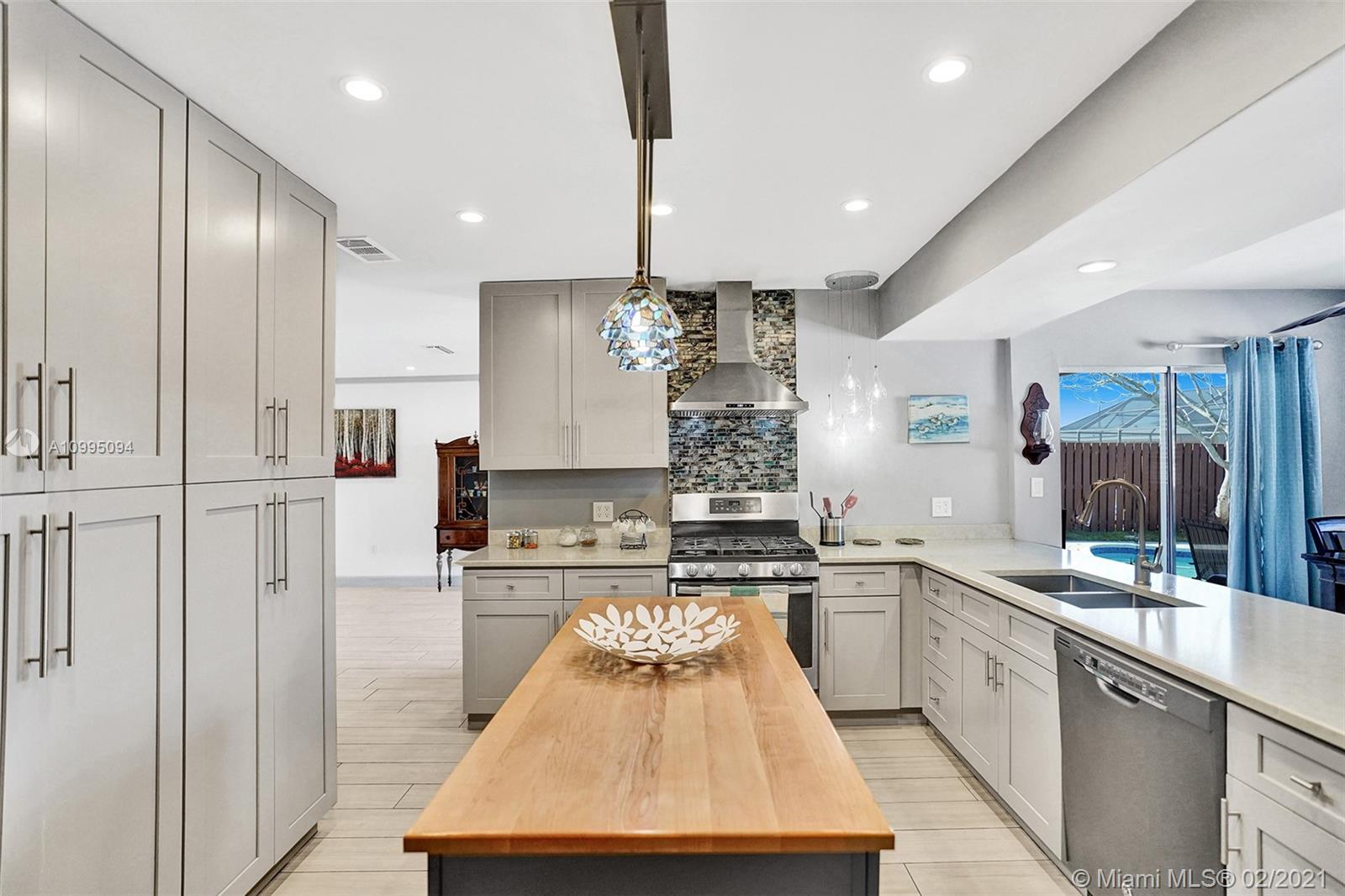 Come fall in love with this Charming Pool Home nestled on an oversized private lot located in West Sunrise, less than 5 minutes from the world-famous Sawgrass Mall. This home has been lovingly remodeled and features a bright and spacious split-floorplan with a modern eye-catching design. Impressive tiled floors in the common areas, and custom carpet in the bedrooms. The open concept provides an excellent flow of space and plenty of room for a large family. The state-of-the-art kitchen is absolutely gorgeous with an oversized Island, 42’’ soft close cabinets, and draws with contemporary LED light fixtures. The Master suite is generous in size with a large walk-closet and relaxing view of the pool area. The backyard is completely private and perfect for entertaining. New A/C. No HOA.